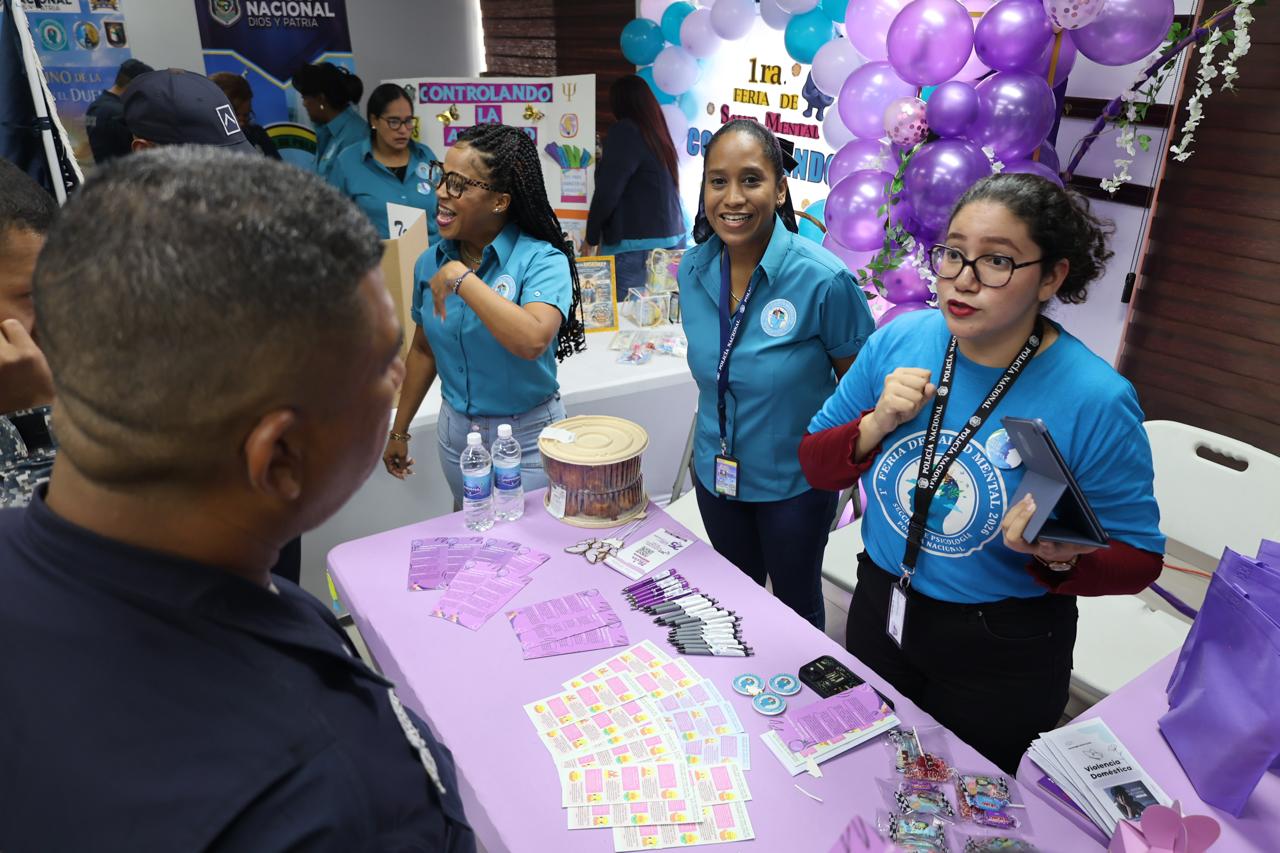 La Policía Nacional inauguró este viernes su primera Feria de Salud Mental, una iniciativa organizada por el Departamento de Bienestar Policial, dirigido a miembros juramentados y no juramentados para fortalecer el bienestar emocional de la familia institucional, desarrollado en el salón de conferencias ubicado en Ancón.