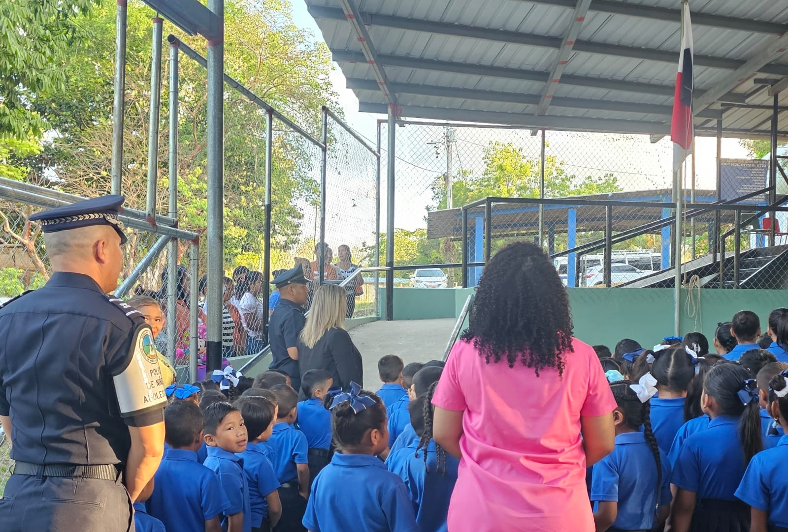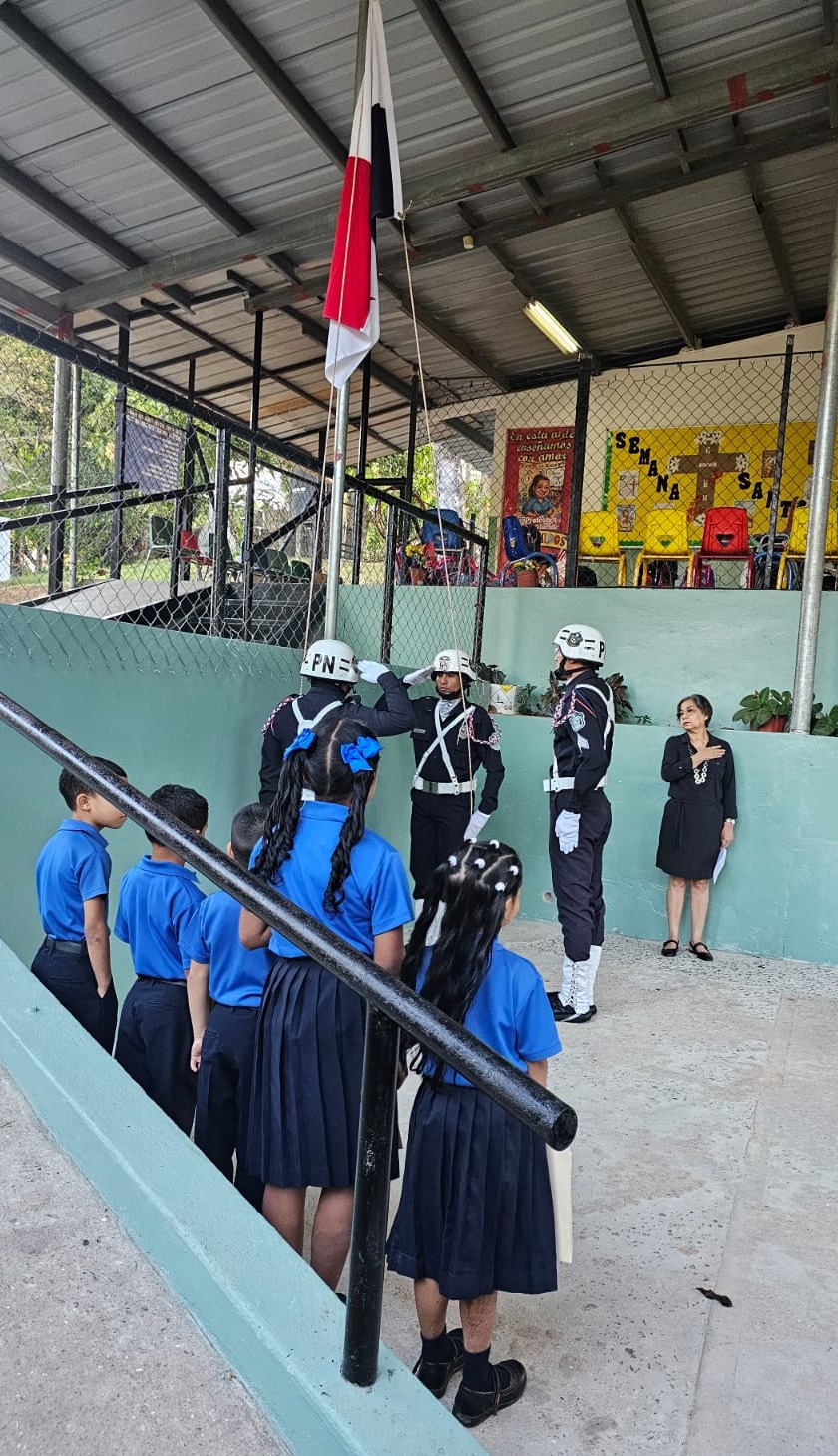 POLICÍA NACIONAL PARTICIPA EN IZADA DEL PABELLÓN EN ESCUELA MARCIA DE CAÑELLAS