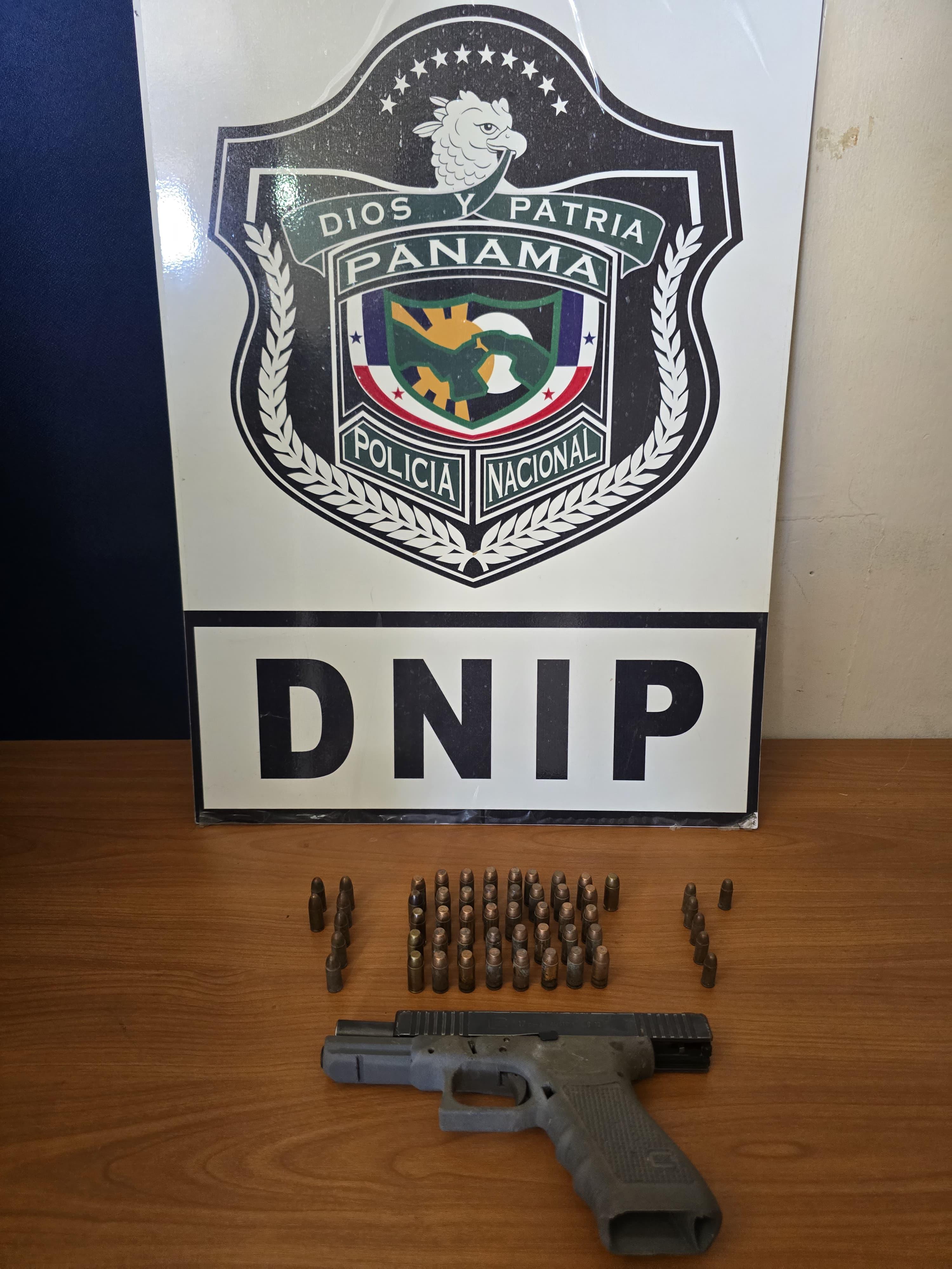 Mediante diligencia de allanamiento y registro en el Corregimiento de las Lomas, provincia de Chiriquí, junto al Ministerio Público, se aprehendió, a dos personas tras decomisarles presunta sustancia ilícita. De igual manera, en este mismo sector en un lote baldío, se ubicó un arma de fuego tipo pistola, un proveedor y municiones. Por otro lado, en el sector de las Paredes, corregimiento de la 24 de Diciembre, se ubicó en un lote baldío, un arma de fuego tipo pistola y varias municiones. |