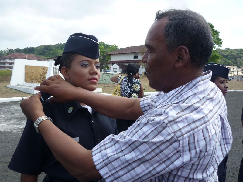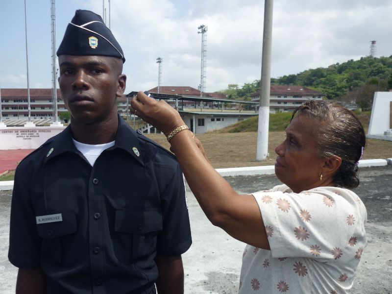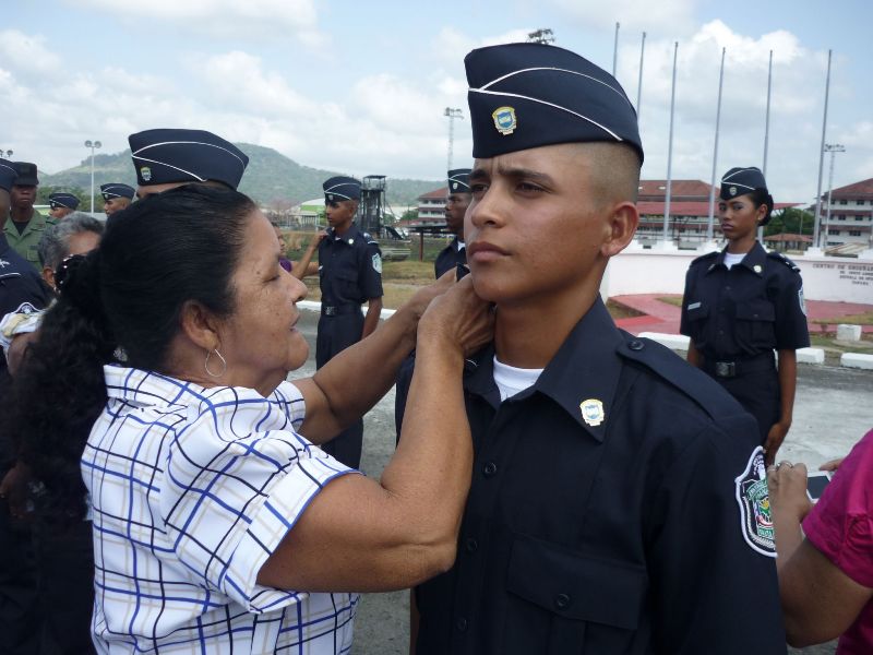 Ochenta y ocho aspirantes de la XVI Promoción 2013, ascendieron a Cadetes de Policía luego de cumplir un periodo de tres meses de adaptación y formación. La imposición de capona fue colocada por los Oficiales y padres de familia, quienes estaban visiblemente emocionados por el logro alcanzado por sus hijos luego de muchos días de esfuerzo, dedicación, sacrificio y abnegación. La ceremonia de ascenso fue realizada en el Patio de Honor del Centro de Enseñanza Superior Dr. Justo Arosemena, a cargo del subcomisionado Alexis Bethancourt Yau, quien instó a los nuevos cadetes a seguir adelante hasta alcanzar la meta trazada. Los Cadetes Crisanto Foster, Vivian Pérez y Vélez Magda, Malvin Frías, fueron distinguidos por sus méritos académicos, conducta, dejando en evidencia lo mejor de su virtud personal para ejemplo de sus compañeros, elevado amor a la Patria, y orgullo de sus padres, los mismos tendrán la responsabilidad de ser guía y ejemplo de sus compañeros. El ascenso se considera un estímulo, con la finalidad de fortalecer el espíritu policial. El Centro de Enseñanza Superior exige a todo el personal de alféreces, cadetes y aspirantes a cadetes, cooperación y disciplina, actuando cada uno de ellos con absoluta responsabilidad en los estudios, en la conducta, en los actos del servicio y en el cumplimiento de sus deberes. Luego de concluido el periodo de adaptación, los nuevos Cadetes de Policía, iniciarán su periodo de clases dictadas por los profesores de la Facultad de Administración Pública de la Universidad de Panamá, por un periodo de 4 años para obtener el título de Licenciado en Administración Policial y por parte de la Policía Nacional el rango de Subteniente. La misión del Centro de Enseñanza Superior es graduar a Oficiales de Policía íntegros, al servicio de la Patria, con el objetivo de llenar las necesidades propias de la comunidad. |