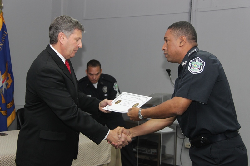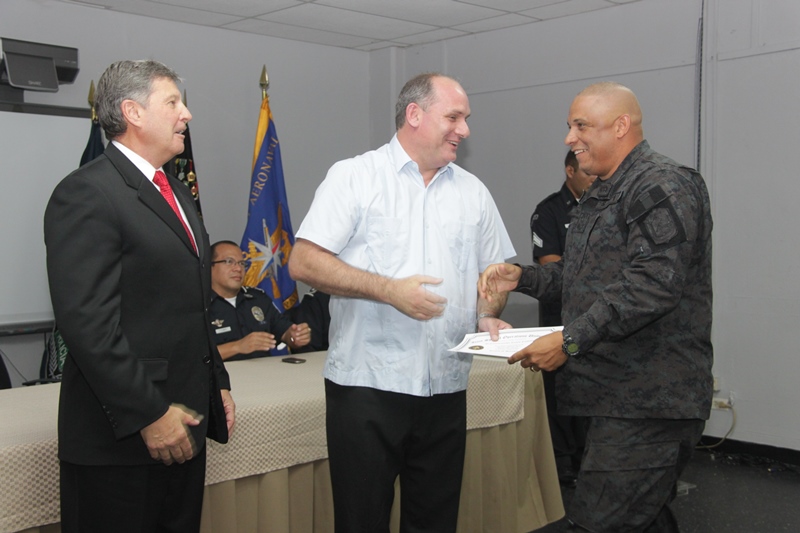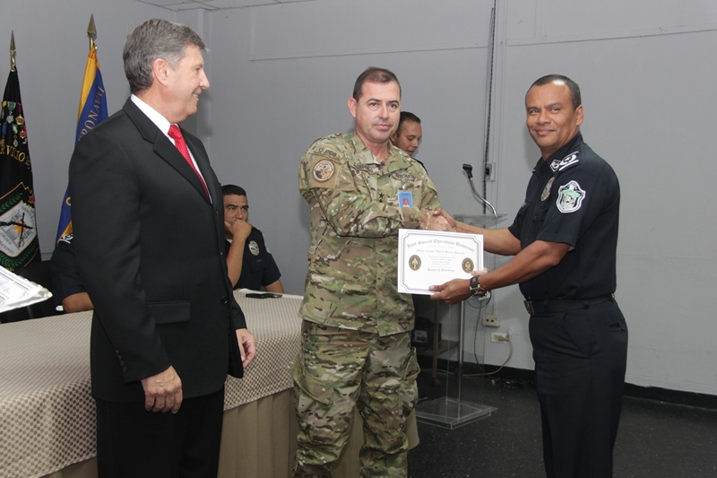 Oficiales de la Policía Nacional, el Senan, Senafront y el SPI recibieron sus certificados tras haber culminado satisfactoriamente el curso de Planificación Operacional, dictado en el Centro de Capacitación y Especialización Policial “General José Domingo Espinar” (CECAESPOL). Esta capacitación que inició el 25 de febrero hasta el 8 de marzo fue dictada por instructores de la Universidad de Joint Special Operations University de Florida con el apoyo de la Embajada de Estados Unidos, con el propósito de intercambiar experiencias y ampliar los conocimientos en asuntos de seguridad y defensa nacional. Además de profesionalizar a sus miembros uniformados; con esta iniciativa también se refuerzan la unidad entre los estamentos de seguridad y la colaboración en conjunta siendo el éxito de las acciones encaminadas a garantizar la convivencia pacífica en pro de la ciudadanía. |