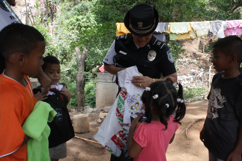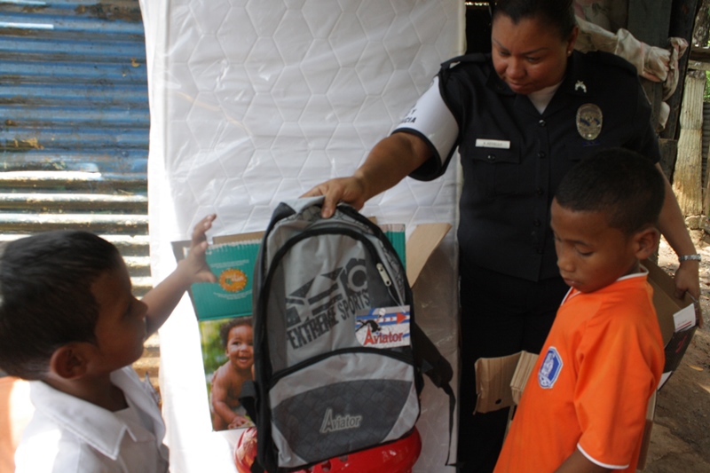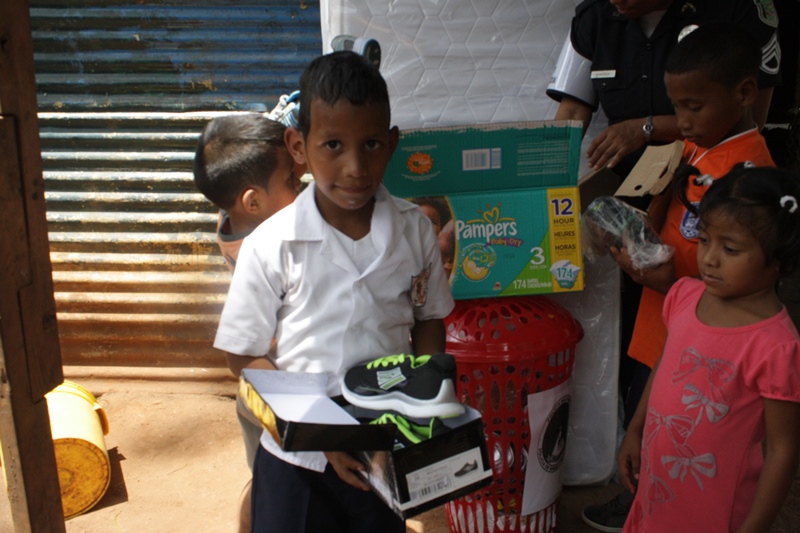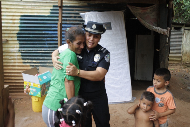 Miriam Ábrego estaba junto a sus seis hijos en su humilde casa ubicada en el sector 17 de Mañanitas, cuando recibió la grata visita de unidades de la Policía de Niñez y Adolescencia de la Zona Metropolitana Este, quienes llevaron una donación en pro de mejorar su situación social. La delegación policial llegó en horas del mediodía del miércoles 3 de abril, grupo comandado por la teniente Sariabeth Rodríguez, quien junto otros policías llevaron 2 colchones ¾, ropa, calzados, bolsas escolares y una canasta de comida. El semblante de alegría de Miriam era evidente, quien en estos momentos espera a su séptimo hijo, tanto así que por solo hecho en decir gracia brotaron en su rostro las lágrimas, a lo cual la teniente Rodríguez la abrazó y le dio aliento para seguir adelante. Antecedentes. La situación de esta familia fue conocida luego que Luis Daniel Gutiérrez de tres años de edad, uno de los hijos de Miriam, fuese a parar al hospital al caer en la quebrada que está al lado de donde viven; la Policía de Niñez y Adolescencia visitó a la familia y se procedió al realizar la donación para mitigar la situación. Otra de las coordinación que lleva a cabo a Policía Nacional, es enviar una trabajadora social para que evalúen la calidad de vida de estas personas (el área donde viven es inundable), para que tengan opción a un terreno o un residencia donde puedan vivir sin riesgo. La Policía Nacional se alegra en ayudar a las personas que más necesitan, gesto de generosidad bendecido desde lo alto y que dan ánimo para ser mejores hombres y mujeres, y valorar lo que Dios nos ha dado. |