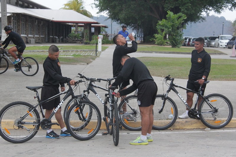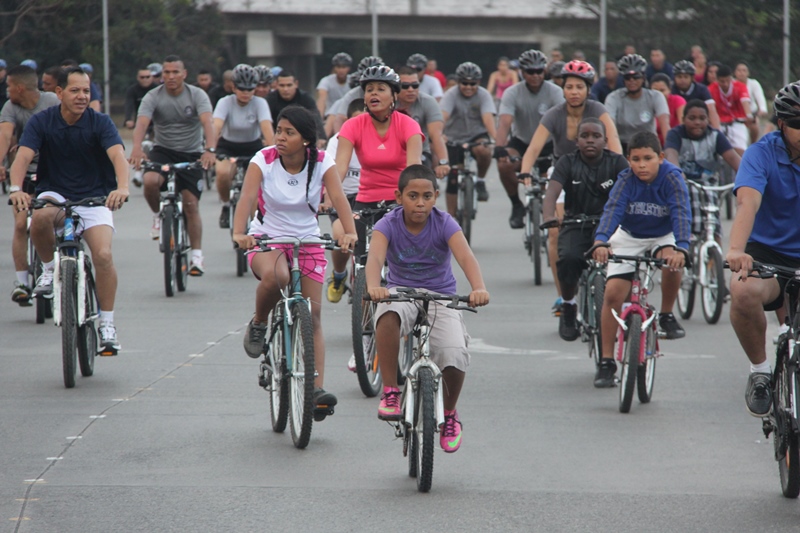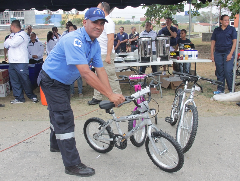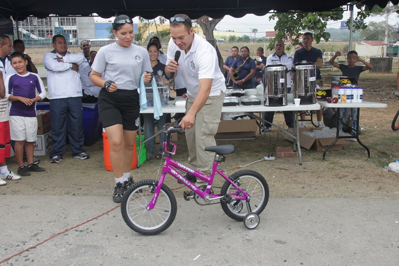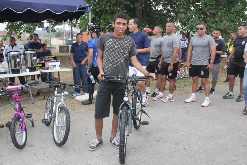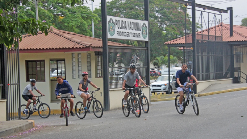 Desde muy temprano y dispuestos a ejercitarse, varios uniformados junto a sus hijos se reunieron en la sede de la Policía Nacional en Ancón, desde donde partió la Cicletada Familiar, iniciando de esta manera las actividades en celebración de los setenta y seis años (76) de aniversario de esta entidad de seguridad pública. Los ciclistas realizaron un recorrido que tuvo como ruta el área de Balboa, hasta la Estatua Arnulfo Arias (primer punto de hidratación), continuando hasta el monumento “Pilares de la Patria” en la Calzada de Amador (segundo punto de hidratación), y finalizó en la sede policial en Ancón, donde fueron recibidos con una alegre murga y se les ofreció un nutritivo desayuno para cargar energías. Los asistentes también participaron de una tómbola, en la que se obsequiaron bicicletas y accesorios. El comisionado Felipe Cruz, jefe de los Servicios Administrativos de Equipos de Protección y Seguridad (SAEPS), expresó que además de brindar un rato ameno; también mediante estas actividades se busca reforzar los lazos familiares, la convivencia laboral y el espíritu de camaradería, importantes en el fortalecimiento de la Policía Nacional, y por ende en el acercamiento con la comunidad.