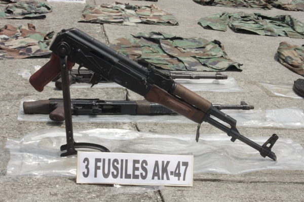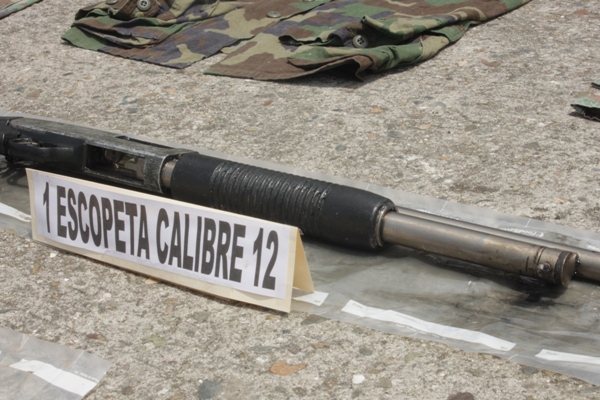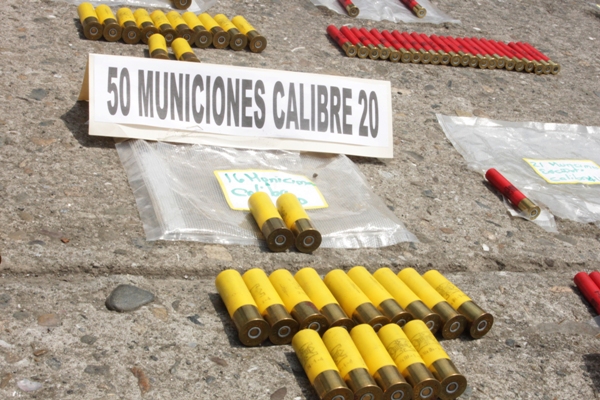 -Sesenta piezas de camisas y pantalones militares de fatiga que hacen un total de 30 juegos de uniformes, las mismas con las insignias US. -Tres fusiles AK-47 con 6 proveedores de 30 municiones y un proveedor circular para correa de tiros calibre 7.62 x 36 -Dos pistolas 9mm con sus proveedores -Una escopeta calibre 12 -Mil municiones calibre 22 -Novecientos treinta y dos municiones calibre 7.62 -Ciento setenta y dos municiones calibre 9mm -Cien municiones calibre 40 -Cincuenta municiones calibre 20 -Cincuenta municiones calibre 16 -Cuarenta y cinco municiones calibre 410 -Un visor nocturno.