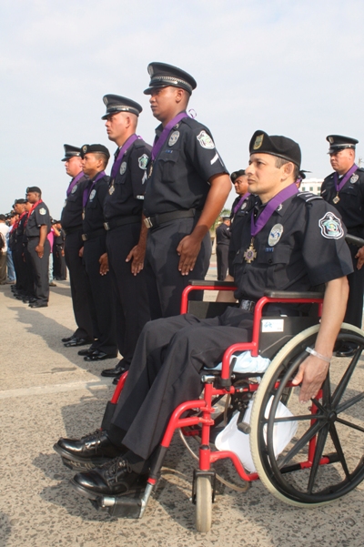 Fueron merecedores también de condecoraciones medalla al Servicio Distinguido, tres canes virtuosos en el Servicio Policial. Por estar próximos a finalizar la misión encomendada en nuestro país, reciben condecoraciones Medalla al Servicio Distinguido, Oficiales de las Repúblicas de Colombia y El Ecuador, agregados policiales. Finalmente con un elegante y vistoso desfile de honor los presentes conmemoraron el Septuagésimo Sexto Aniversario de la institución. Donde se dejó oír las felicitaciones al trabajo que realizan estas unidades en beneficio de la paz y seguridad de la ciudadanía. Familiares de los condecorados también se dieron cita en el lugar.
