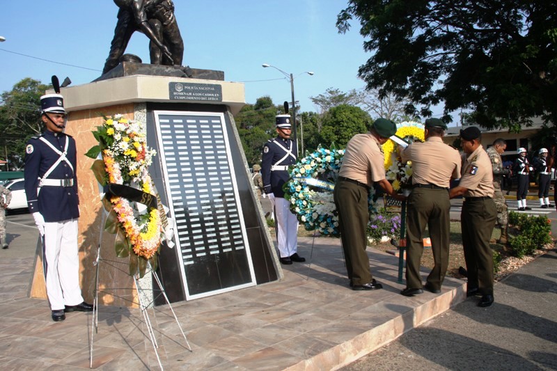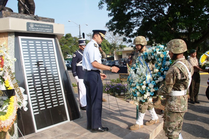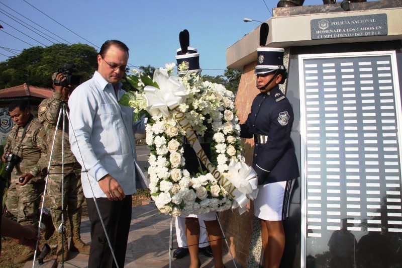 Durante un solemne acto realizado en la Sede Policial de Ancón, fueron recordados 124 policías caídos en cumplimiento de su deber, y que contribuyeron al fortalecimiento de la institución de seguridad, siendo con su sacrificio un ejemplo para las generaciones presentes y futuras de los uniformados. La ceremonia que inició en horas de la mañana forma parte de las actividades en celebración del 76 aniversario de la Policía Nacional. El director de la PN, ingeniero Julio Moltó, junto a los miembros del Directorio Nacional Policial y de las demás entidades de seguridad colocaron las ofrendas florales al monumento póstumo dedicado a estos héroes de la Patria, seguido del toque del Silencio que dio paso a los 21 disparos de bala de salva en homenaje a estos valerosos hombres.