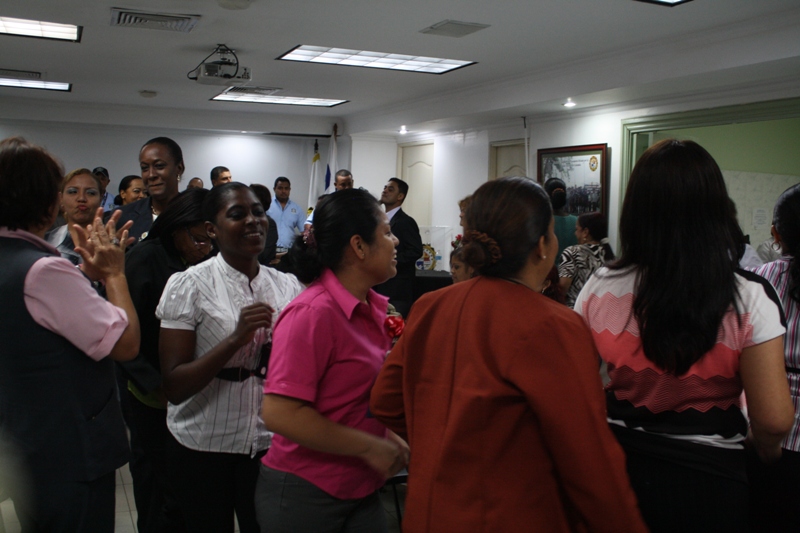 Un efusivo reconocimiento recibieron este martes 23 de abril las secretarias de la Dirección de Investigación Judicial (DIJ), por parte de sus jefes y compañeros de labores en el marco de la celebración del día de aquellas mujeres que con su labor diaria coadyuvan al buen desarrollo de todas las acciones judiciales que realizan sus compañeros investigadores en las calles. El evento conto con una interesante charla sobre la ética profesional por parte de la Fundación Pro-Fe, donde las secretarias pudieron reforzar sus conocimientos en este tema tan importante para todo ser humano en especial para aquellos que laboran al servicio de la ciudadanía. “Una Secretaria es la persona que comparte, organiza y procesa los documentos y decisiones confidenciales de la empresa y de su jefe, prioriza temas con responsabilidad, discreción y eficiencia”, señaló el Comisionado Manuel Castillo, Director de Investigación Judicial, al dirigirse y felicitar a las homenajeadas. La inolvidable velada que incluyó obsequios y un suculento almuerzo, fue amenizada por el Conjunto Típico de la Policía Nacional, quienes pusieron a bailar a todas con temas de conocidos tipiqueros del patio como Samy y Sandra, Ulpiano Vergara, Nenito Vargas; así como con sonadas canciones del inmortal Victorio Vergara Batista.