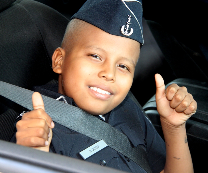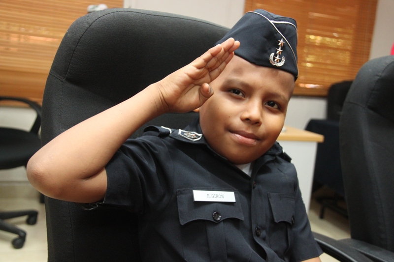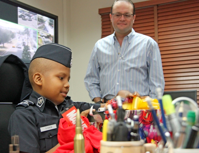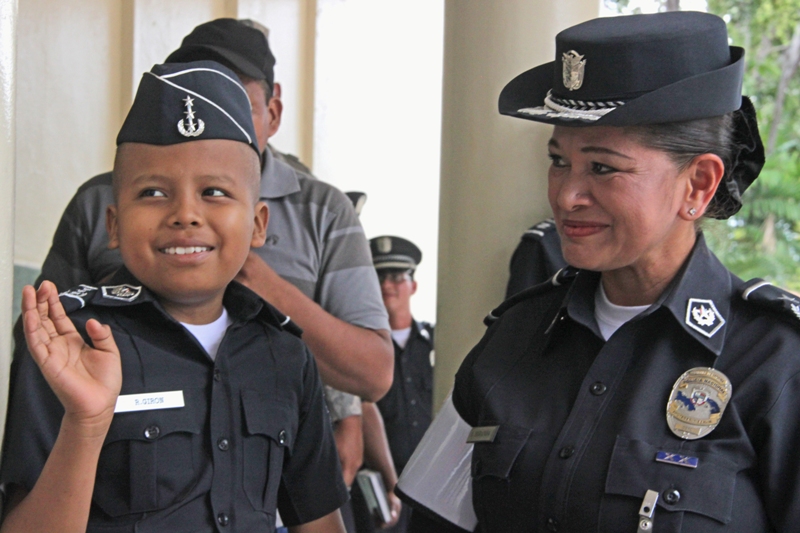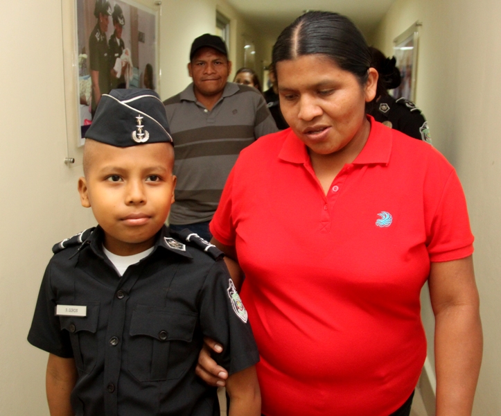 Ronald Girón sueña con ser policía cuando sea grande. Pero ese sueño podría ser truncado por la enfermedad que padece: Leucemia Linfoblástica Aguda. La Policía Nacional, al conocer su deseo, decidió nombrarlo comisionado honorario y lo recibió con su uniforme azul en su sede de Ancón. El pequeño Ronald, fue recibido en el Despacho Superior por el jefe de la institución, Ingeniero Julio Moltó, donde recibió obsequios alusivos a Spiderman, su personaje favorito de comics y un televisor pantalla plana, para que continúe disfrutando de las aventuras de su héroe arácnido. Y es que como todo un héroe, este valiente niño lucha contra la leucemia, que recientemente se le detectó y para la cual recibe tratamiento en el hospital Del Niño. Posteriormente fue transportado a bordo de la patrulla Mustang hasta la Dirección Nacional de Operaciones, donde conoció el funcionamiento de las cámaras de videovigilancia mediante la detallada explicación del comisionado Bartolomé Agüero. También fue agasajado junto a sus padres con un almuerzo, siendo sorprendido con más regalos para él y para sus hermanitos. Sus padres, muy complacidos, agradecieron este gesto que la Policía Nacional en conjunto con la Fundación Pide un Deseo, a cargo del Banco general han tenido con su hijo, quien sueña con ser policía. Ya a bordo de la patrulla Mustang con rumbo hacia la posada de la Fundación de Amigos del Niño con Leucemia y Cáncer (Fanlyc), donde se hospeda, Ronald se despidió no sin antes, prometer que un día será un gran policía al servicio de la comunidad.