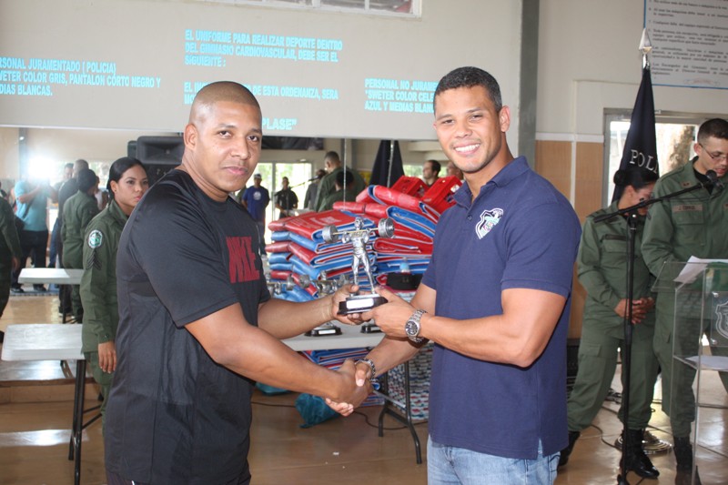 Trece unidades de diferentes zonas, departamentos y dependencias policiales participaron en horas de la mañana de hoy del IV Campeonato de Levantamiento de Poder (Power Lifting), el cual se efectuó en el Gimnasio Cardiovascular ubicado en la Sede de Policía de Ancón. El evento fue organizado por la Dirección Nacional de Bienestar Policial y Familiar —Departamento de Deportes—, en las categorías Pres Banca, Peso Muerto y Sentadilla donde los atletas demostraron su destreza a la hora de levantar pesas. Los ganadores fueron galardonados en una ceremonia presidida por la capitana Itzel Calles. A continuación los que triunfaron en este evento deportivo: Categoría 80 kilogramos Pres Banca Categoría 90 kilogramos Pres Banca Categoría 100 kilogramos Pres Banca Categoría 80 kilogramos Peso Muerto Categoría 90 kilogramos Peso Muerto Categoría 100 kilogramos Peso Muerto Categoría 80 kilogramos Sentadilla Categoría 90 kilogramos Sentadilla Categoría 100 kilogramos Sentadilla Mientras que en las tres categorías en mención, pero en 100 o más kilogramos, el sargento 2º Manuel Caballero, de la Zona de Policía de Los Santos triunfó al no haber contrincantes; es oportuno señalar que Caballero ha participado en campeonatos nacionales en estas categorías y ha obtenido triunfos importantes. Los jueces, Luis Mena y Gustavo Santimateo, recibieron certificados de reconocimientos por su ardua labor en brindarle orientación a los pesista y evitar con ello lesiones. La Policía Nacional continuará realizando esta clase de torneos que le permiten a los uniformados mostrar sus habilidades fuera de sus responsabilidades de mantener la paz y convivencia pacífica entre la ciudadanía. |