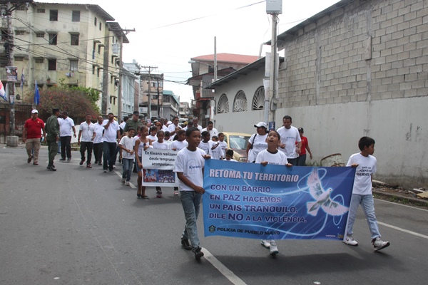 Un grupo de personas conformado por Pastores de la Iglesia Evangélica, Integrantes del Movimiento Scouts de Panamá, miembros del Club de Leones el Cuerpo de Bomberos de Panamá, el Municipio de la ciudad capital, integrantes de Vecinos Vigilantes y miembros de la Policía Nacional de Panamá, realizaron este sábado 27 de abril, una caminata por la paz que recorrió las principales calles de los sectores de Barraza, Plaza Amador, Patio Pinel, Patio Rochet, Las Calles 25 arriba y abajo, así como las calles 23 del barrio de El Chorrillo. El Subcomisionado Bolívar Lasso, Jefe Seguridad Ciudadana de la Policía Nacional explicó que esta caminata se efectuó con la intención de fomentar una cultura de paz en niños, jóvenes y adolescentes de estos humildes barrios de la ciudad capital y además promover los valores sociales, culturales, religiosos y educativos en menores y adultos que residen en esta área. Por su parte, el Pastor Eloy Camargo de la Iglesia de Dios Pentecostal, Movimiento Internacional de la República de Panamá, explicó que se está retomando una labor que se había dejado de hacer, al integrar a los niños y jóvenes no sólo en acciones deportivas y culturales sino además del trabajo evangelístico que en el pasado se estaba haciendo. En tanto Cecilia Echeverría de Reiter, Subcoordinadora de los Programas de Vecinos Vigilantes de los corregimientos de Parque Lefevre y Río Abajo dijo que se hace un trabajo de prevención para explicarle a la comunidad de como debe protegerse ya que estamos viviendo tiempos de mucha violencia por lo que hay que organizar a la comunidad para prevenir los delitos. |