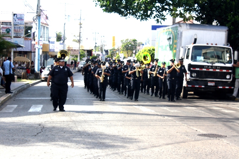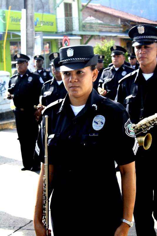 Como parte de la integración Policía-Comunidad este martes, la Banda de Música de esta institución de seguridad pública, se trasladó hasta la ciudad de Penonomé, capital de la provincia de Coclé, para participar del desfile organizado por la Alcaldía del distrito en conmemoración a los 432 años de fundación de este pujante distrito. En el acto protocolar estuvieron presentes el Comisionado Miguel Ávila De Los Santos, Jefe de la Segunda Zona Policial, el alcalde del distrito, Señor Carlos Jaén, el Presidente del Consejo Municipal Hilgan Alvarado, entre otras autoridades. Al desfile asistieron diversas instituciones educativas, que desfilaron por las principales calles de Penonomé, así como la delegación de la comuna penonomeña y cerrando el desfile, la banda de música de la Policía Nacional, primer ente de seguridad pública del país. La Banda de Música de la Policía Nacional estuvo al mando del Subcomisionado Bolívar Lasso, quien mostró su complacencia por la oportunidad de compartir con los penonomeños, tan especial fecha. |