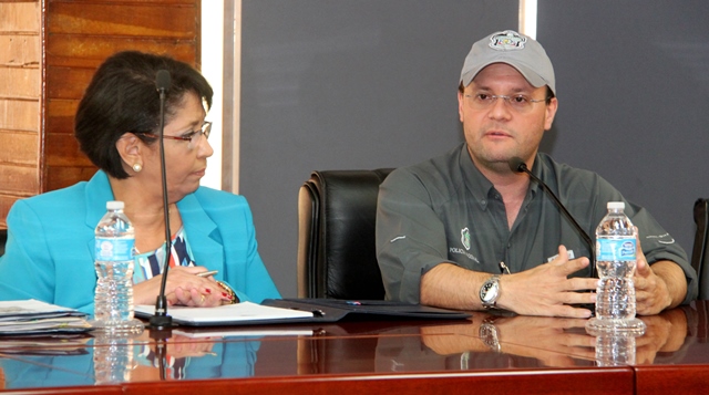 Una reunión de coordinación se realizó este jueves 2 de mayo con la Procuradora General de la Nación Ana Isabel Belfon y el director de la Policía Nacional Julio Moltó en la sede de esta institución de seguridad pública. En la reunión donde participaron miembros del directorio de la Policía Nacional y diversos fiscales se intercambiaron ideas sobre la labor policial en la lucha contra el crimen y el manejo de los expedientes que lleva el Ministerio Público. El encuentro realizado en la Sede Policial de Ancón tuvo como puntos a tratar, lograr la capacitación de ambos personales en conjunto, además de la creación de nuevos mecanismos de trabajo con el fin de mejorar el trabajo en equipo y controlar la delincuencia y criminalidad del país. Según Belfon, el intercambio de ideas impulsará con mayor fuerza el trabajo realizado tanto por la Policía Nacional como por parte de los fiscales que por el caso les compete. Recomendó abordar la criminalidad en el país haciendo mucho énfasis en las estadísticas, así como incrementar los programas de Seguridad Ciudadana para lograr que la población se involucre en la lucha en tener un panamá más seguro. El director de la Policía, Julio Armando Moltó indicó que en conversaciones anteriores con diferentes divisiones entre ellas, el Departamento de Seguridad Ciudadana y el Departamento de Relaciones Públicas, se ha tratado el tema de buscar mecanismos que logren que la comunidad en sí se incluya en los programas y frecuenten el uso de comunicación con la institución. El jefe de la Dirección de Información Policial (DIP) comisionado Jorge Miranda y el jefe de la Dirección de Investigación Judicial comisionado Manuel Castillo también hicieron uso de la palabra al tratar el tema de las retenciones e investigaciones policiales que se realizan en conjunto con las autoridades competentes cumpliendo así con lo establecido en la Constitución Política de la República de Panamá. Finalmente se acordó mantener con mayor frecuencia este tipo de reuniones donde afloren nuevos mecanismos de trabajo en conjunto a favor de la seguridad panameña. |