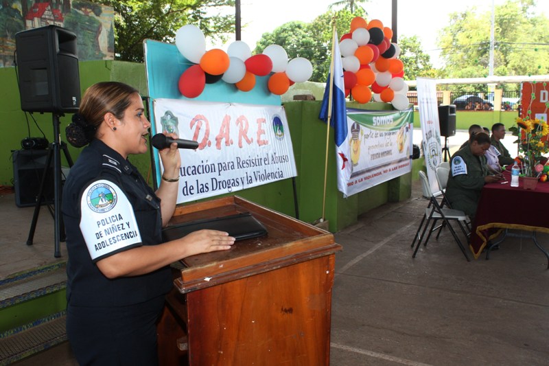 La escuela Ricardo J. Alfaro, ubicada en el sector de Tocumen se sumó al programa de Educación para Resistir el Abuso de las Drogas y la Violencia, conocido como D.A.R.E en sus siglas en ingles, que coordina la Policía Nacional. Mediante este programa unos 375 estudiantes que cursan los sextos grados de este plantel recibirán a través de la orientación de los uniformados, consejos sobre cómo decir no a las drogas, evitar ser víctimas de la presión de grupo, practicar los valores que procuren la tolerancia y el respeto, que permitan la convivencia pacífica. En esta iniciativa se unen los esfuerzos de los educadores, padres de familia y la Policía para garantizar desde la infancia, a jóvenes libres del consumo de sustancias tóxicas, y por tanto un futuro lleno de buenas oportunidades. Para la teniente Sariabeth Rodríguez, de la Policía de Niñez y Adolescencia, además de prevenir a los niños y niñas sobre estos peligros; otro de los objetivos centrales es que apliquen lo aprendido en su vida cotidiana, convirtiéndose en agentes multiplicadores de cambio. Por su parte, la subdirectora del centro educativo, Coralia de Monterrey expresó que D.A.RE es un pilar importante para la prevención tomando en cuenta los resultados positivos del programa, mas en esta escuela cuya matrícula se aproxima a los 2, 500 estudiantes, la mayoría de ellos provenientes de áreas en riesgo social. Estos alumnos recibirán una capacitación de tres meses, posteriormente serán visitados por los uniformados para reforzar este acercamiento Policía-Comunidad. |