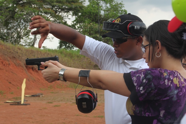 Son pocas las personas a las que le gustan las armas de fuego. La mayoría siente temor tan sólo de pensar en tener una en sus manos, pero este miedo lo vencieron varios famosos del patio, quienes laboran para la emisora Wao 97 ½ y programas de televisión demostrando su valentía en el polígono de tiro, de la Policía Nacional, ubicado en Cerro Tigre. Se trató de un convivio entre las personalidades de radio, televisión y unidades policiales quienes pasaron un rato agradable, muchos perdieron el miedo a las armas, y al final todos quedaron entusiasmados por lo que querían disparar una y otra vez. Al encuentro de tiro acudieron reconocidas figuras como: Eddie Vásquez, Eduardo Lim Yueng, Miguel Oyola, mejor conocido como Miguelito Style, El chef Argimiro Armuelles, Ariel Lim Yueng conocido en la farándula como El Chino Lim Yueng, la cantante Kathy Phillips, Marisol Guizado, entre otros, además de invitados especiales entre ellos los oyentes quienes con sus llamadas se sumaron encuentro. El comisionado, Felipe Cruz, jefe de los Servicios Administrativos de Equipos y Protección de Seguridad, dio la bienvenida al grupo quienes deseosos de conocer todo sobre la manipulación de armas, escuchaban atentamente la charla que el experto les ofreció. El Comisionado Cruz contestó preguntas por parte de los invitados. Una vez en la zona de tiro, los expertos en armas se percataron que la mayoría nunca había disparado, ni sabían como hacerlo, por lo que los instructores le brindaron todo el apoyo y las recomendaciones necesarias para la manipulación de las mismas. "Párese con las piernas separadas, así. Ahora sosténgala con las dos manos, empuñe con la derecha y con la izquierda sostenga. El gatillo me lo va a apretar apenitas con la yema del índice. Un toque, apenas, despacio. Que no le tiemblen las manos, agárrela firme. Apunte a la silueta y trate de no mover mucho las manos. Aquí no se practica para matar, pero todo el mundo busca el círculo", Eran parte de las indicaciones que recibieron los participantes, quienes sorprendidos, luego del disparo, no podían creer que lo habían ejecutado. Muchos quedaron admirados con el trabajo y la preparación que conlleva ser un policía, se dejo oír por uno de los invitados “Es sorprendente la formación de una unidad quién aparte de saber disparar, debe velar por la seguridad de todos, la faena no es nada fácil", concluyó. Por su participación todos los presentes recibieron de manos del Director General, de la Policía Nacional, Julio Armando Moltó, un certificado, “Reconocimiento por el Uso de Arma de Fuego”. Además de souvenirs que también les ofreció la institución como recuerdo de su visita. Para cerrar con broche de oro los presentes se deleitaron con un sancocho, además de carne, pollo asado, y refrescos, entre otras picadas que le ofrecieron las unidades policiales. Actividades como estas buscan que la población conozca otra cara del policía, el policía amigable, su contacto con la comunidad, parte de su preparación una vez sale a la calle a brindarle seguridad a todo un país. Un convivo donde se logra valorar la capacidad mental del individuo y los sentimientos que puede experimentar en un momento determinado. |