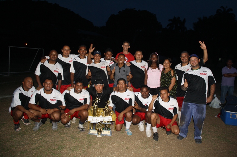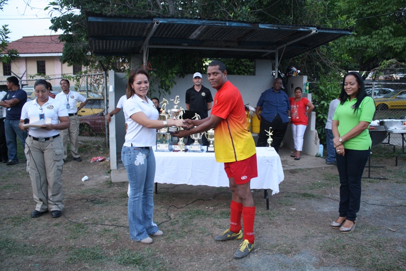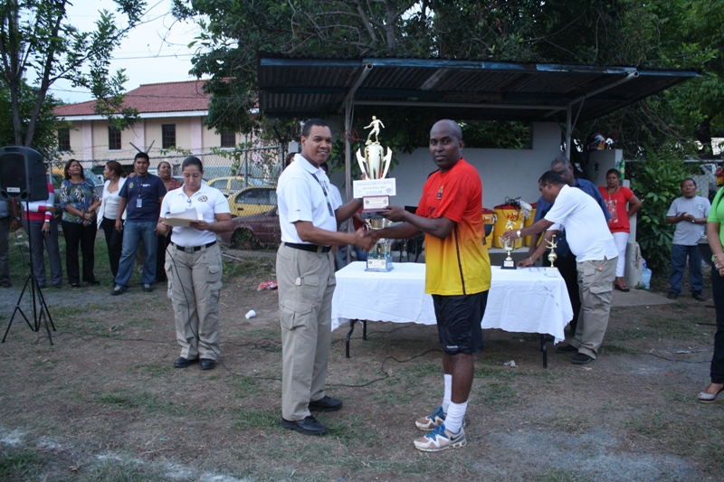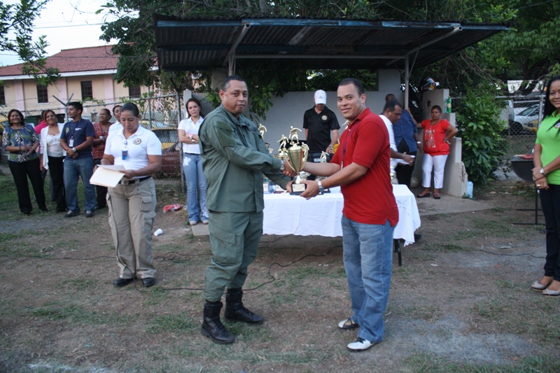La División de Narcóticos de la Dirección de Investigación Judicial, se alzó este viernes con el campeonato de la liga interna de futbol, realizada en la cancha de juego ubicada en dicha sede judicial por espacio de tres meses. Los antinarcóticos en la liga abierta derrotaron dos goles a cero a las unidades de la escolta, en un duelo no apto para cardiacos donde ambos equipos dejaron la piel en el campo para llevarse el primer lugar. Así mismo, los antinarcóticos eliminaron dentro de la categoría veteranos al equipo de Ia Subdirección de Investigación Judicial de San Francisco, derrotándolos en un juego muy estrecho que culminó un gol a cero. En un honroso tercer y cuarto lugar quedaron la División de Homicidios y la de Captura respectivamente; mientras que el título de Jugador Goleador de la liga de veteranos se le adjudicó al mayor Julio Wong, el Sargento 2do. Franklin Delgado, se llevo el trofeo del mejor jugador y como mejor portero se alzó el cabo Iro. Braulio Santos. Como segundo, tercer y cuarto lugar de la liga abierta quedaron los equipos de la Escolta, Patrimonio Económico y el de la Fiscalía Auxiliar, respectivamente. En tanto que el licenciado Mijaid Tuñón, ocupo el puesto de mayor goleador en liga abierta y el cabo Iro. Abdul Ortega, se alzó con el título de mejor portero en dicha liga. El evento deportivo fue presidido por el Director de Investigación Judicial, comisionado Manuel Castillo, quien estuvo acompañado de su equipo de oficiales e invitados especiales como el Comisionado Ramón Castellanos, director de Responsabilidad Profesional y el Subcomisionado Jacinto Gómez, de la Dirección Nacional de Migración, oficiales, clases y familiares. |