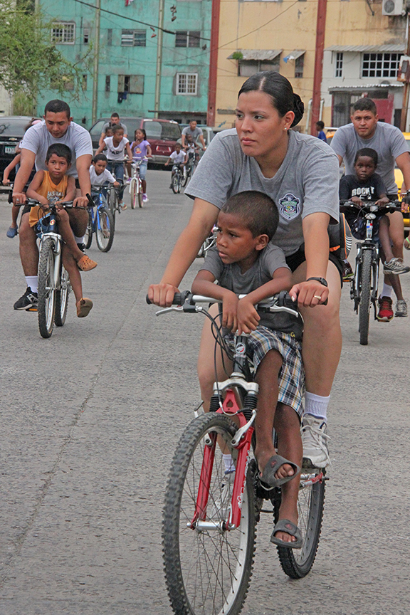 Niños y niñas del corregimiento de Curundú pasaron una tarde divertida a bordo de sus bicicletas, al realizar un recorrido por las principales vías de este sector, a la vez que apreciaron los cambios positivos que han transformado su barrio en un lugar pacifico, donde pueden jugar sin los peligros de la violencia; esto como parte de las jornadas recreativas, culturales y deportivas que organizan los policías que conforman la Unidad Preventiva Comunitaria (UPC). Cada uno de ellos no solo pasa un rato ameno en estas actividades, sino que también aprenden a compartir, a ser solidarios y ser amigos de los demás niños; fortaleciéndose así, otros valores como la tolerancia, el respeto y la convivencia pacífica. La Policía Nacional desarrolla y promueve actividades que además de reforzar su acercamiento con la comunidad, previenen el delito a través de la participación sobre todo de la niñez y la juventud, que acogen al policía como su amigo y ejemplo digno a seguir, para convertirse en ciudadanos de bien.