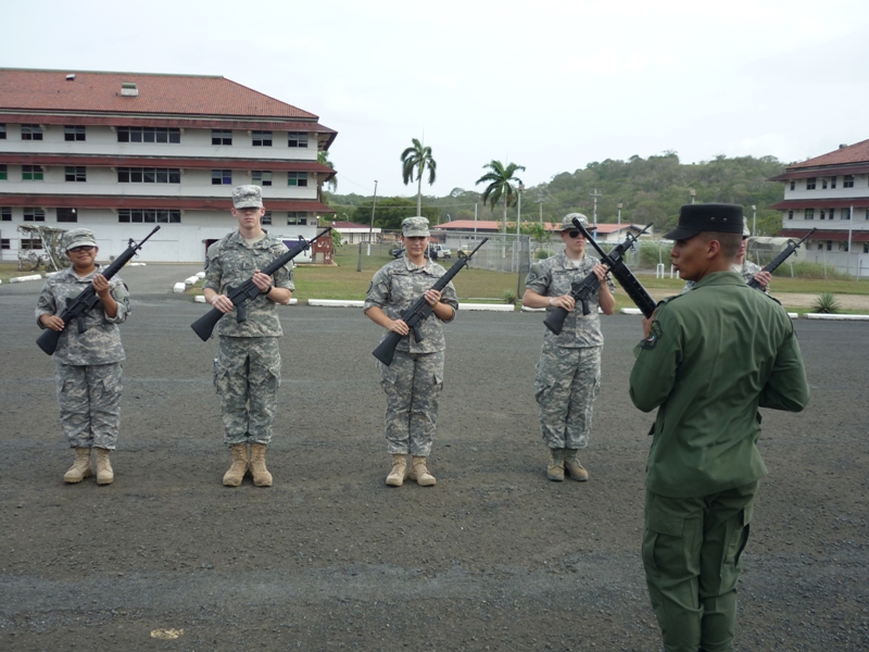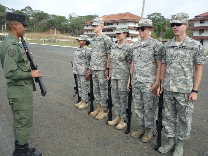Cadetes de la Universidad de Texas A&M visitan el Centro de Enseñanza Superior Dr. Justo Arosemena, de la Policía Nacional con la finalidad de estrechar lazos de amistad e intercambiar experiencias con los cadetes panameños. Los Cadetes del CES, le dieron la bienvenida, realizaron un recorrido por las instalaciones de la Escuela de Oficiales, donde se preparan íntegramente a la futura oficialidad de la Policía Nacional. Esta es la tercera vez que una delegación de la Universidad de Texas A&M visita la Escuela de Oficiales. Entre las actividades a realizar durante su estancia en nuestro país, es colaborar con la realización junto a Oficiales y Cadetes panameños de la labor social en el Centro Básico de Huile, ubicado en Arraiján, corregimiento de Nuevo Emperador, la misma es dirigida por el jefe del CES, el Subcomisionado Alexis Bethancourt Yau, y consiste entre otras cosas en la reparación de la escuela, pintura, cortar la grama y suplir las necesidades más apremiantes del centro. Durante la labor social, los cadetes visitantes como los locales, tendrán la oportunidad de compartir con los niños del Centro Básico, durante una fiesta que se le realizará, con payasos, pinta caritas, piñatas etc para llevar alegría y distracción a los pequeños de la escuela. Otras de las actividades programadas será un encuentro amistoso de futbol tanto femenino como masculino, en la Academia de Policía Dr. Belisario Porras ( ACAPOL), como parte de su programa de aniversario. Los Cadetes de Texas A&M permanecerán en el CES por espacio de una semana, y se tienen organizadas varias actividades culturales y turísticas. |