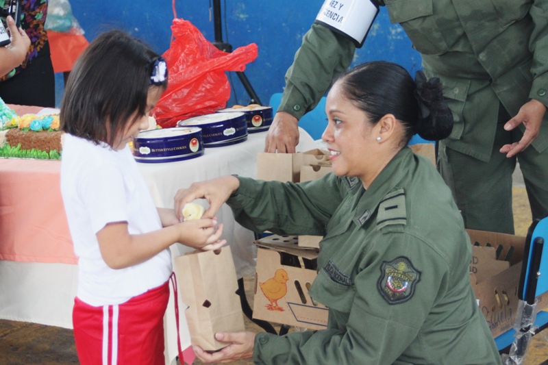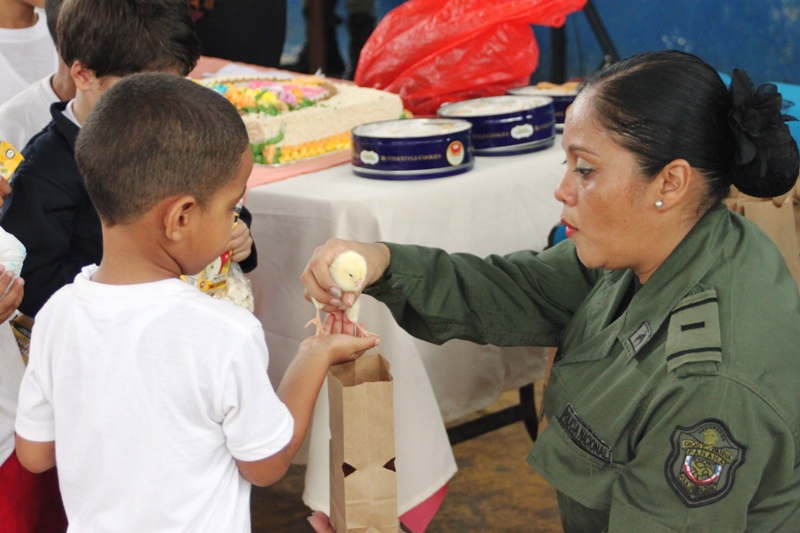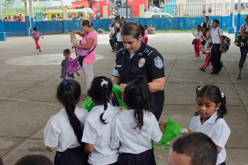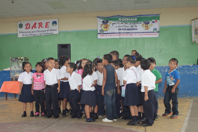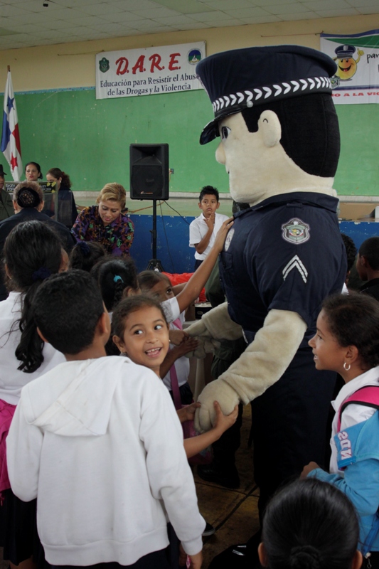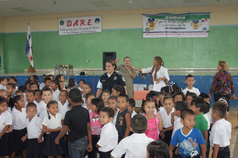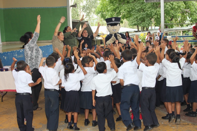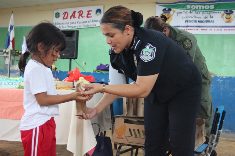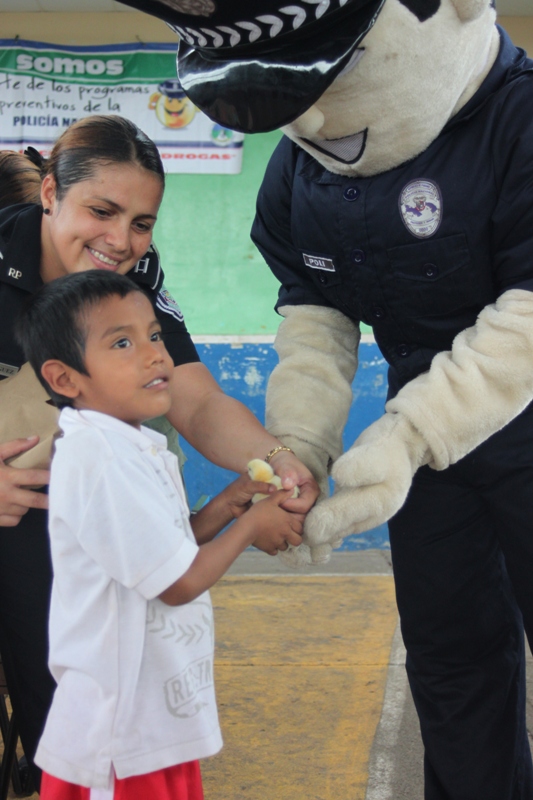 Unos doscientos alumnos que cursan los niveles de prekinder y kínder de la escuela Jardín de Las Mañanitas mostraron sus dotes artísticas durante el acto clausura del programa Niños y Niñas Seguros que desarrolla la Policía de Niñez y Adolescencia en varios planteles educativos del país. Estos pequeños que participaron en la capacitación de 2 semanas fueron orientados por los uniformados sobre medidas de seguridad que los ayudará a enfrentar situaciones de riesgo en sus hogares, la calle y en la escuela. Para su sorpresa estos infantes también recibieron la visita de Poli, el amigable policía, con quien compartieron un delicioso pastel, golosinas y palomitas de maíz. Pero eso no fue todo, cada niño y niña recibió de parte de los uniformados, un pollito como regalo, gracias a la colaboración de la empresa Melo, que apoyo la iniciativa de la Policía Nacional. De esta manera la Policía Nacional estrecha sus lazos con la comunidad, velando por el bienestar de los niños, que son la semilla del futuro. |