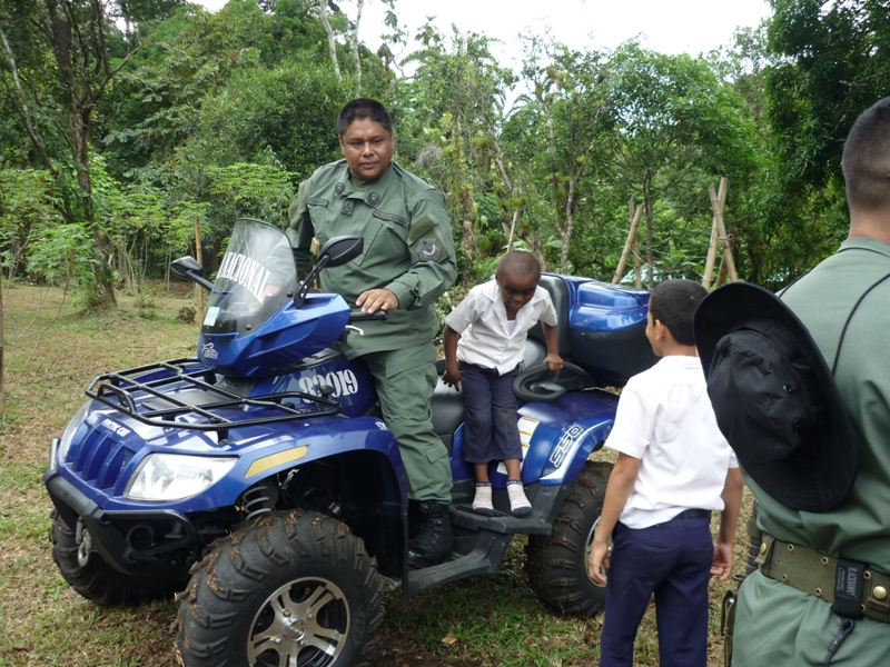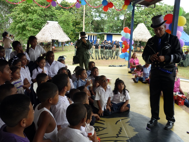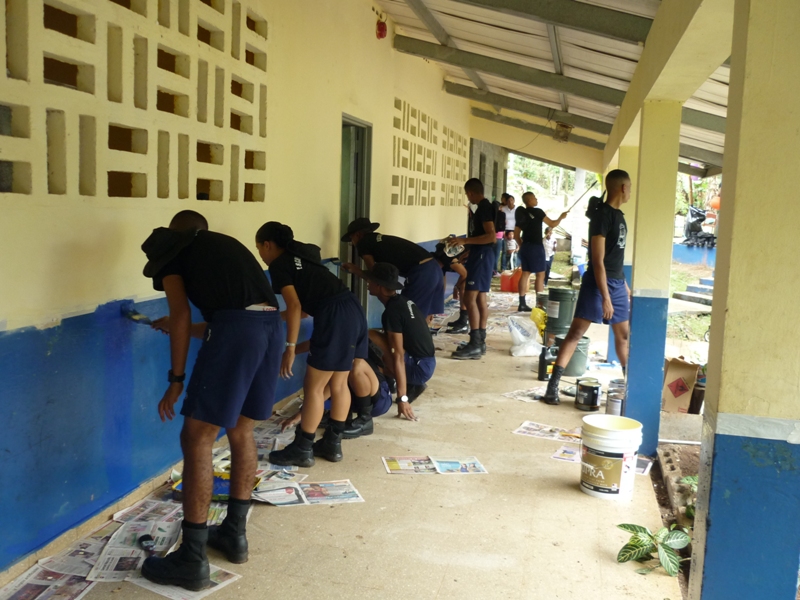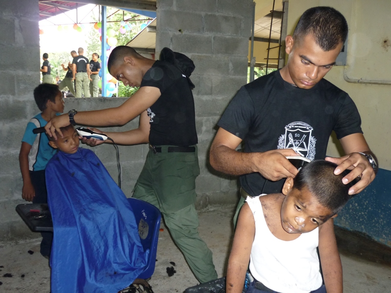 Cadetes y oficiales del Centro de Enseñanza Superior Dr. Justo Arosemena de la Policía Nacional y de la Universidad Texas A&M, visitaron la comunidad de Huile ubicada en Arraiján, corregimiento de Nuevo Emperador, con la finalidad de realizar una labor social en el Centro Básico de Huile. La misión de los cadetes y oficiales consistía en la reparación de la plomería, limpieza de la grama, pintura, colocación de la cerca perimetral, arreglo y acondicionamiento del comedor, colocación de cielo raso entre otras. La alegría de los niños se reflejaba en el rostro luego de ver a los uniformados llegar a su comunidad, en una larga caminata de 5km, la cual tuvo la participación del Alcalde de ese sector, Manolith Samaniego. La oportunidad fue propicia para que la Sargento Raquel Sánchez, del Departamento de Niñez y Adolescencia y la Subteniente Dora Zurita del CES, dictaran charlas a los padres de familia sobre el cuidado de los hijos, como detectar si el niño consume droga, si es abusado sexualmente, violencia doméstica entre otros temas. La escuela Huile cuenta actualmente con una matrícula de 56 estudiante, de acuerdo a su directora la maestra Yatzibel Quintero, es una de las tres que existen en el sector Oeste como multigrados, adicional está la de Monte Claro y la Playita. Según la maestra Quintero, es la primera vez que el plantel recibe este tipo de ayuda la cual requerían con urgencia, ya que el Centro Básico de Huile, no cuenta con los recursos adecuados, por lo que solicitan al Ministerio de Educación el nombramiento de un celador, la adecuación del salón de informática y el nombramiento de personal administrativo, la entrega de material didáctico para trabajar con los menores. La alegría llegó a los niños por medio de la magia del mago de la Policía, el cual dibujó en su rostro una sonrisa y una cara de asombro al ver desaparecer y aparecer los objetos, las pinta caritas, la demostración de karate, los juegos, bailes, arrancaron los aplausos de los padres de familia al ver a sus hijos competir, para ganarse un premio. Los cadetes panameños como los de Texas A&M, compartieron amenamente con los estudiantes, le entregaron obsequios a cada niño, celebraron una fiesta, el dulce y el helado no se hicieron esperar para endulzar el paladar de los pequeñines quienes con mucha fuerza rompieron las piñatas. Las maestras Yessica Olmedo, Anabela Guevara, como los padres de familia agradecieron al Subcomisionado Alexis Bethancourt Yau, jefe del Centro de Enseñanza Superior el gesto de escoger la escuelita de Huile, para brindar el apoyo que requerían, ya que el 22 de mayo cumplen 58 años de fundación. |