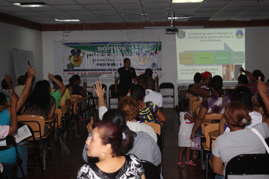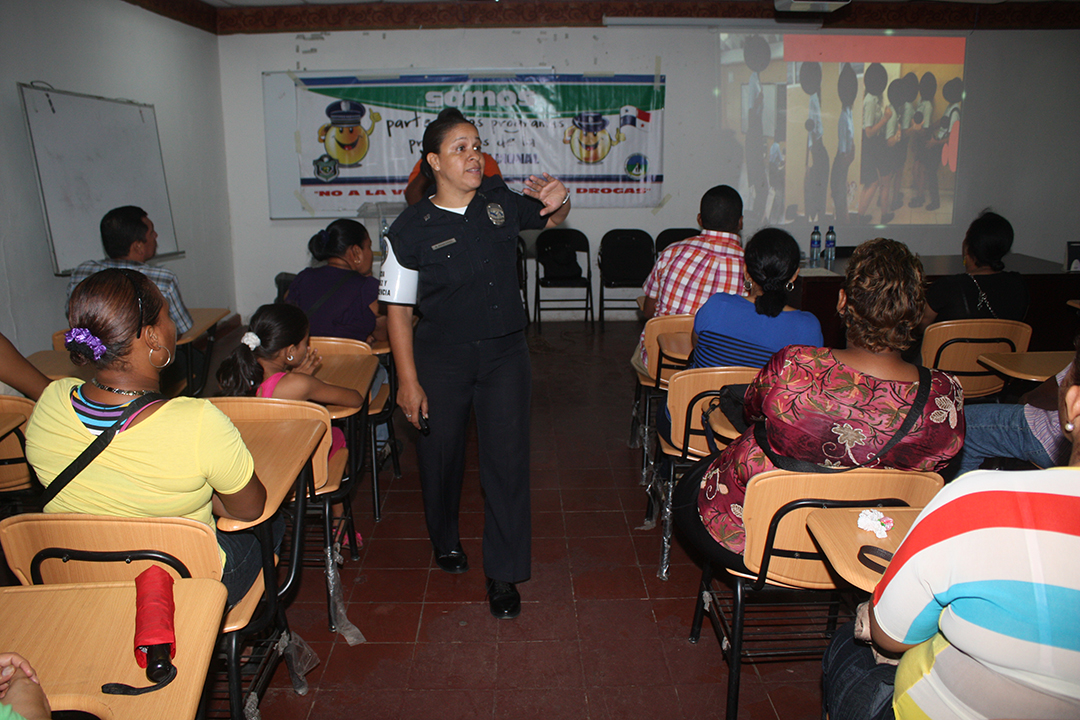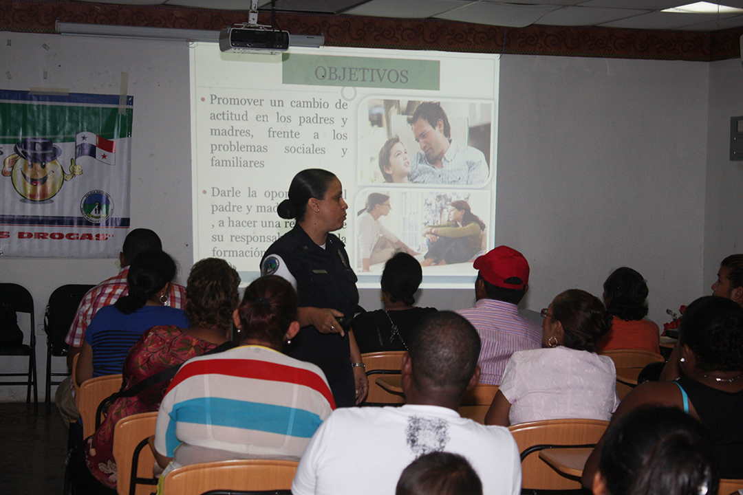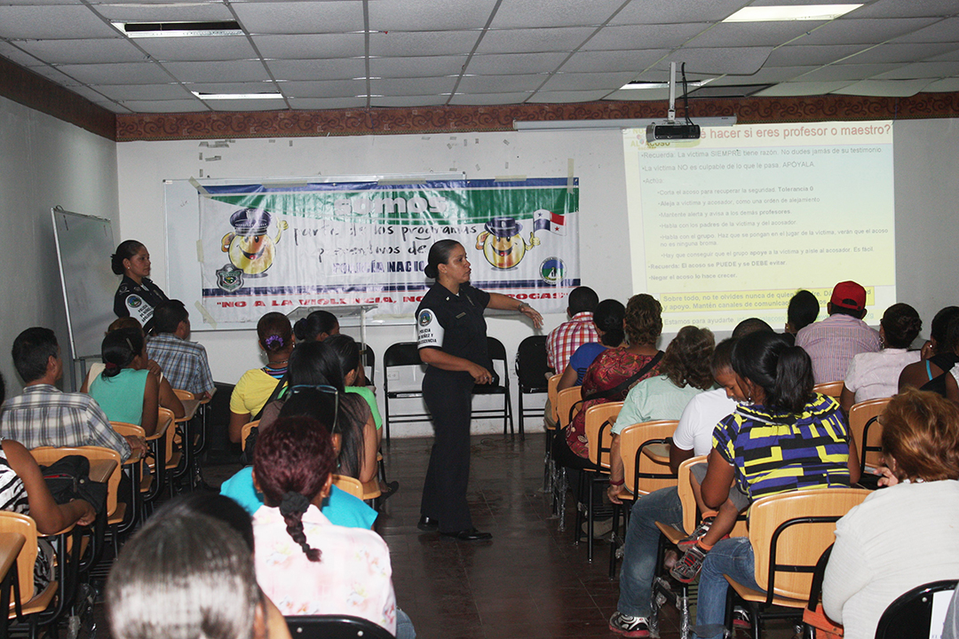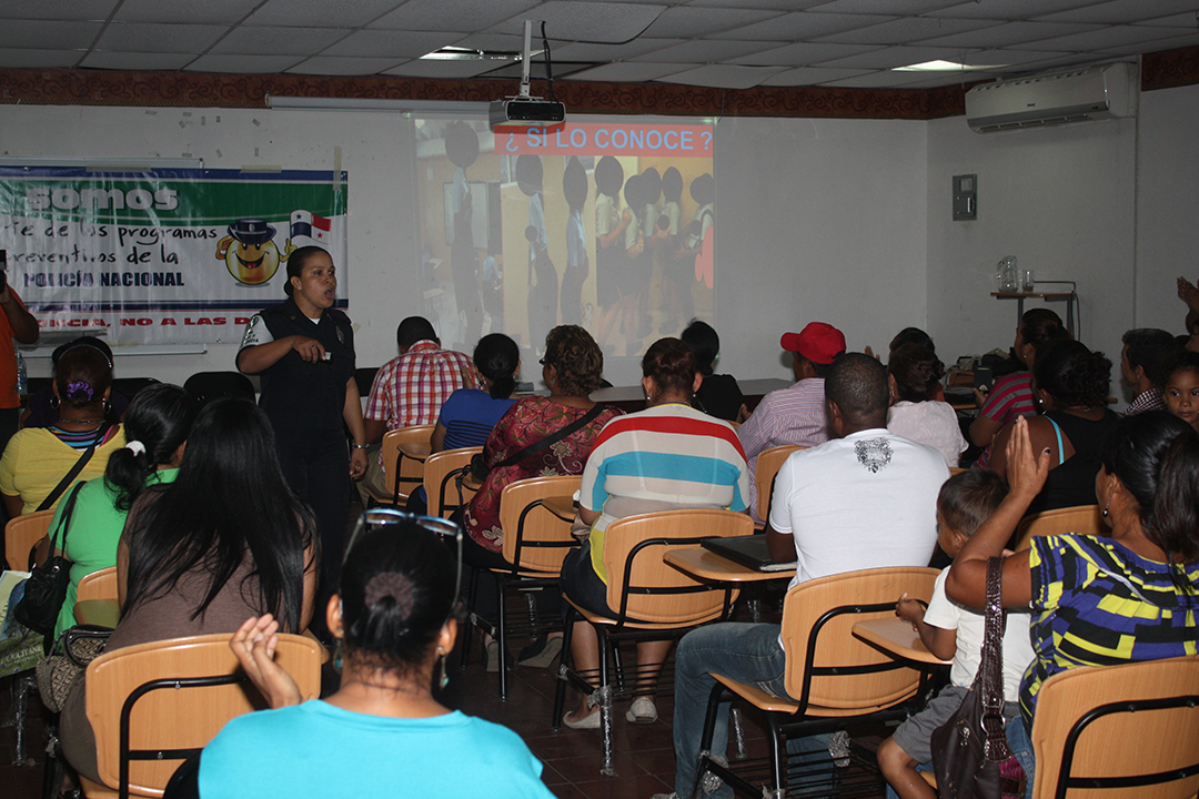 Los padres de familia de los alumnos del Colegio José Remón Cantera fueron orientados por miembros de la Policía de Niñez y Adolescencia, sobre cómo mantener la comunicación con sus hijos y detectar las señales que indican si se encuentran en situaciones de riesgo y pueden atentar contra su integridad física o emocional. Esta charla forma parte de la jornada de capacitaciones que la Policía Nacional realiza en los diferentes planteles educativos del país, donde los uniformados debidamente especializados les brindan consejos para evitar el acoso escolar o bullying, la presión de grupo y el uso de drogas. Durante la dinámica que se realizó este jueves 23 de mayo, los padres de familia participaron y plantearon sus inquietudes sobre estos temas, siendo respondidas sus interrogantes por la Teniente Stephanie Onorio y la sargento primero Beatriz Pimentel. Además de guiar a los acudientes y docentes, las unidades que laboran en la Policía de Niñez y Adolescencia conversan con los estudiantes sobre las maneras de romper el temor a hablar sobre estos problemas y evitar ser víctimas. La Subcomisionada Erly Miranda, jefa de la Policía de Niñez y Adolescencia indicó que con estas iniciativas se busca reforzar la prevención y promover la convivencia pacífica entre los estudiantes, en un esfuerzo que también incluye a los padres y educadores. La Policía Nacional mantiene la presencia en los diferentes centros de enseñanza a nivel nacional, promoviendo y desarrollando programas como D.A.R.E, Jóvenes contra el Delito, entre otros que velan por el bienestar de niños y jóvenes. |