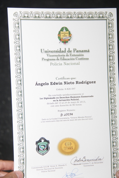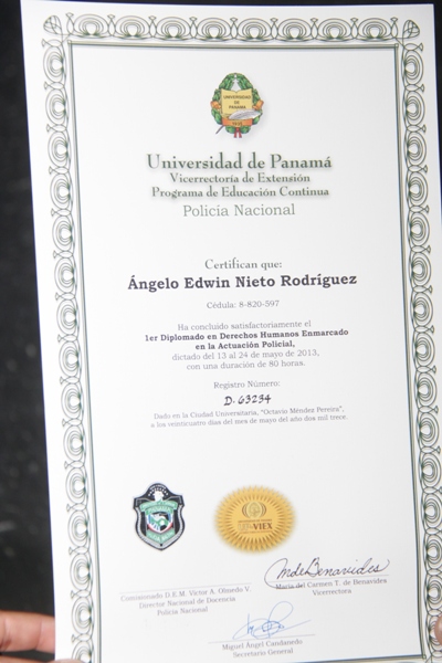 Con éxito finalizó la primera graduación que realizara la Policía Nacional, concernientes al Diplomado de Recursos Humanos, “Enmarcado en la Actuación Policial” efectuadas del 13 al 24 de mayo, en el Campus de la Universidad de Panamá. El personal participante recibió durante su preparación las herramientas técnicas y metodológicas para desarrollar con mayor eficiencia su gestión, manejo y negociación de conflictos, toma de decisiones, gestión de humanización en casos varios, liderazgo y dirección de recursos humanos. Este tipo de actividades forma parte de la preparación continua que la institución promueve en su personal, que repercute en la atención de la ciudadanía, ya que se busca modernizar los servicios institucionales. La ceremonia que tuvo lugar en el Centro de Capacitación y Especialización Policial, (CECAESPOL), fue presidida por el subteniente, Iván Julie, quién fue el organizador del diplomado. Julie señaló que “En el contexto del diplomado se tuvo presente desarrollar en los participantes los puntos esenciales para enfrentar el crecimiento de sus organizaciones, mediante una gestión de las personas donde éstas sean consideradas como clave de éxito y generador de valor agregado a las diferentes instituciones de seguridad del país”. Puntualizó. En la clausura del diplomado, además de las unidades policiales había participantes del Servicio Nacional Aeronaval, Municipio de Panamá y representantes del Sistema de Protección Institucional. Este diplomado en Recursos Humanos constituye un complemento para el ejercicio profesional, en un área tan compleja e importante para mejorar la comunicación y relaciones interdisciplinarias dentro de la diversidad de organizaciones que, hoy por hoy, atienden estas unidades en servicio de la seguridad de un país.