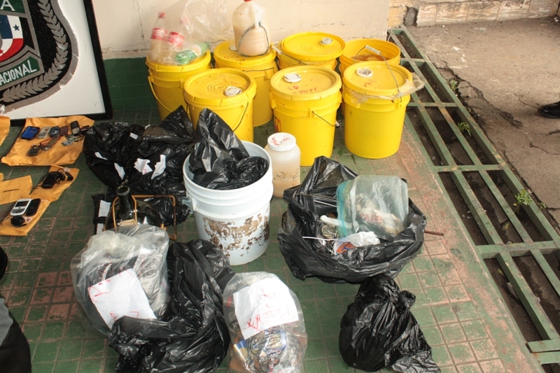Unidades de la Policía Nacional en coordinación con los funcionarios de la Fiscalía Auxiliar de Panamá y Chiriquí, efectuaron este miércoles 29 de mayo una requisa en la cárcel Pública de David, con la finalidad de decomisar artículos prohibidos. En este operativo en conjunto se realizó desde la 5:00 de la mañana, por las unidades policiales del DIP, Unidad Canina,DIJ, agentes antipandillas y grupos policivos con la Fiscalía, donde lograron decomisar 47 platinas, 25 punzón, 63 celulares, 121 chips de celulares, 23 cuchillos, 6 memorias, 50 galones de chicha fermentadas, 35 baterías de celulares, 24 rasuradoras, una computadora portátil, 6 envoltorios de hierba seca, 14 cargadores, 1 martillo, 45 cuchillos, 15 encendedores, 10 pedazo de hierro y otros. El Fiscal Auxiliar de la República, licenciado Marcelino Aguilar, manifestó que las diligencias de allanamientos se hicieron individualmente por celdas, lo que determinó ubicar con facilidad, a quienes presuntamente se dedican a estafar a las personas vía celular, con la supuesta venta de fincas, de bienes inmuebles, de automóviles; y donde incluso se está utilizando el nombre de algunos empresarios de este país falsamente, asegurando que los contactos de las víctimas se han hecho desde ese centro penal. El jefe nacional de Operaciones de la Policía Nacional, comisionado Bartolomé Agüero, indicó que se realizó la acción para darle tranquilidad a los reos de que no serán objetos de agresión por parte de sus compañeros.