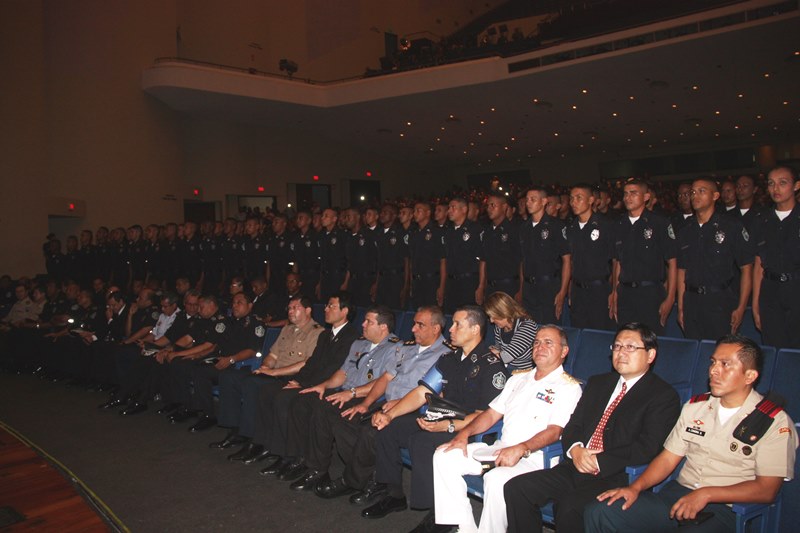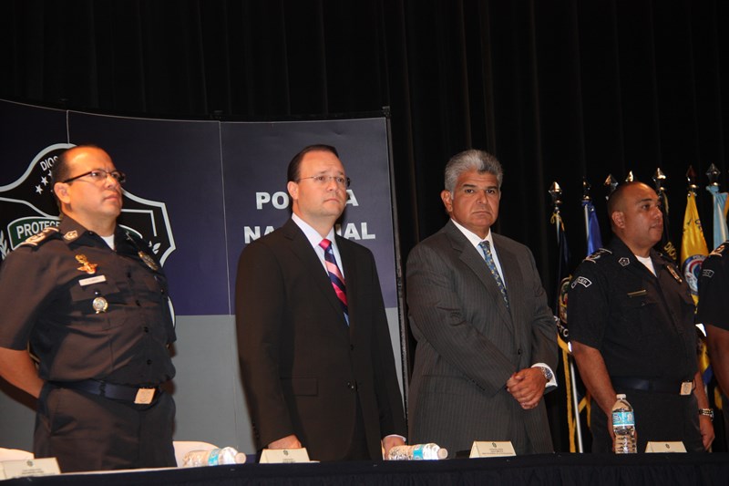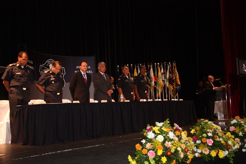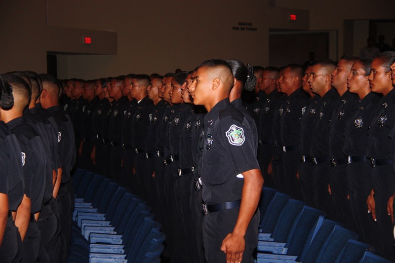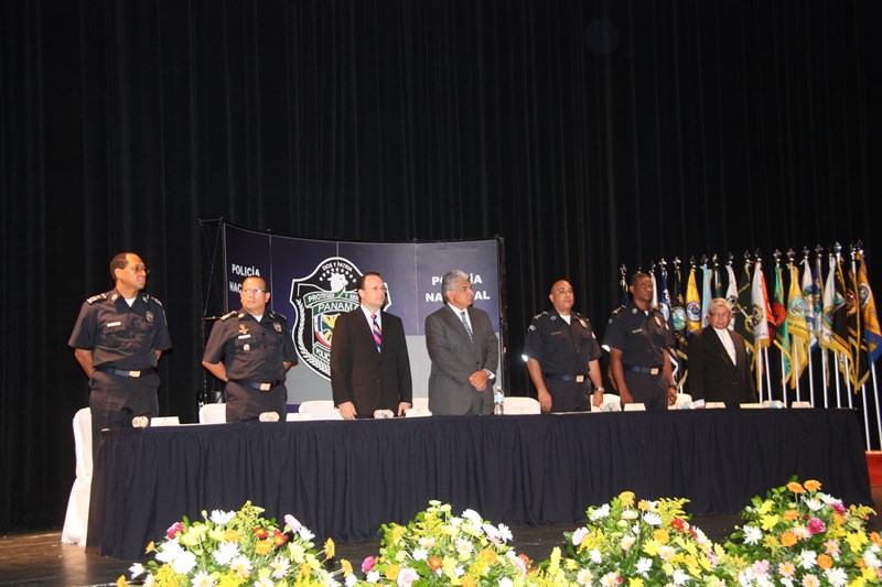 En medio de una formal ceremonia realizada en el Teatro Anayansi del Centro de Convenciones Atlapa, unos 147 aspirantes se convirtieron hoy en nuevos agentes de la Policía Nacional tras una ceremonia de graduación policial presidida por el Ministro de Seguridad Pública José Raúl Mulino y el director de la Policía Nacional Julio Armando Moltó. Los integrantes de la Sexagésima Octava promoción de agentes de policía Cabo 2do. Post Mortem Anel Eduardo Cano González fueron juramentados por el Ministro de Seguridad quien les recordó su compromiso de proteger y servir a la nación y a sus integrantes. Por su parte el director de la Policía Nacional, los exhortó a mantener la integridad y la imagen tanto del uniforme que portan como de la institución a la cual pertenecen. El acto incluyó la entrega de una placa a la señora Jesuani Ortega Ramos, esposa del Cabo Segundo Post Mortem Anel Eduardo Cano González de manos del Ministro Mulino. Seguidamente el ingeniero Moltó hizo entrega de medalla y presente a los graduandos distinguidos de la citada promoción, honor que les correspondió al agente Roberto Pacheco Pérez como primer puesto de honor; al agente Juan José Alberto Ibarra en el segundo puesto de honor y al agente Nicomedes Ricky Urrutia en el tercer puesto de honor. Estos recientes egresados de la Academia de Policía Presidente Belisario Porras arribaron de diversos lugares del territorio nacional para ser capacitados e instruidos en cuatro módulos de clases en los cuales se les dictó materias como Guardia Interior, armamento, tiro, doctrina, ética policial, seguridad ciudadana y Derechos Humanos entre otras. No menos importante es recordar que estos graduandos realizaron sus prácticas policiales en diferentes áreas que incluyeron la Zona de Policía Metropolitana, San Miguelito, Colón y Panamá Oeste, lo cual les brindó una experiencia previa a fin de conocer de primera mano el manejo de la rutina policial en las rondas, retenes, y los diversos tipos de patrullajes que implican trabajar en su nueva profesión. |