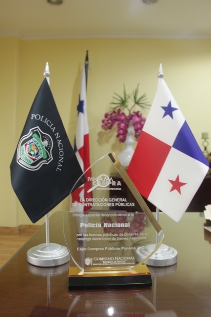 En días pasados, la primera institución de seguridad del Estado, la Policía Nacional, recibió una placa de reconocimiento por parte de la Dirección General de Contrataciones Públicas de Panamá. El otorgamiento se llevó a cabo luego que esta dirección realizara una encuesta entre los proveedores del sistema, quienes entre otras entidades calificaron a la Policía Nacional como la institución que mayor agilidad y transparencia y que se plasman en los procedimientos de compras. De esta forma, el Licenciado Luis Saavedra, Director Nacional de Finanzas recibió la placa en nombre de la Policía Nacional por sus buenas prácticas de compras del catálogo electrónico de bienes y servicios. |