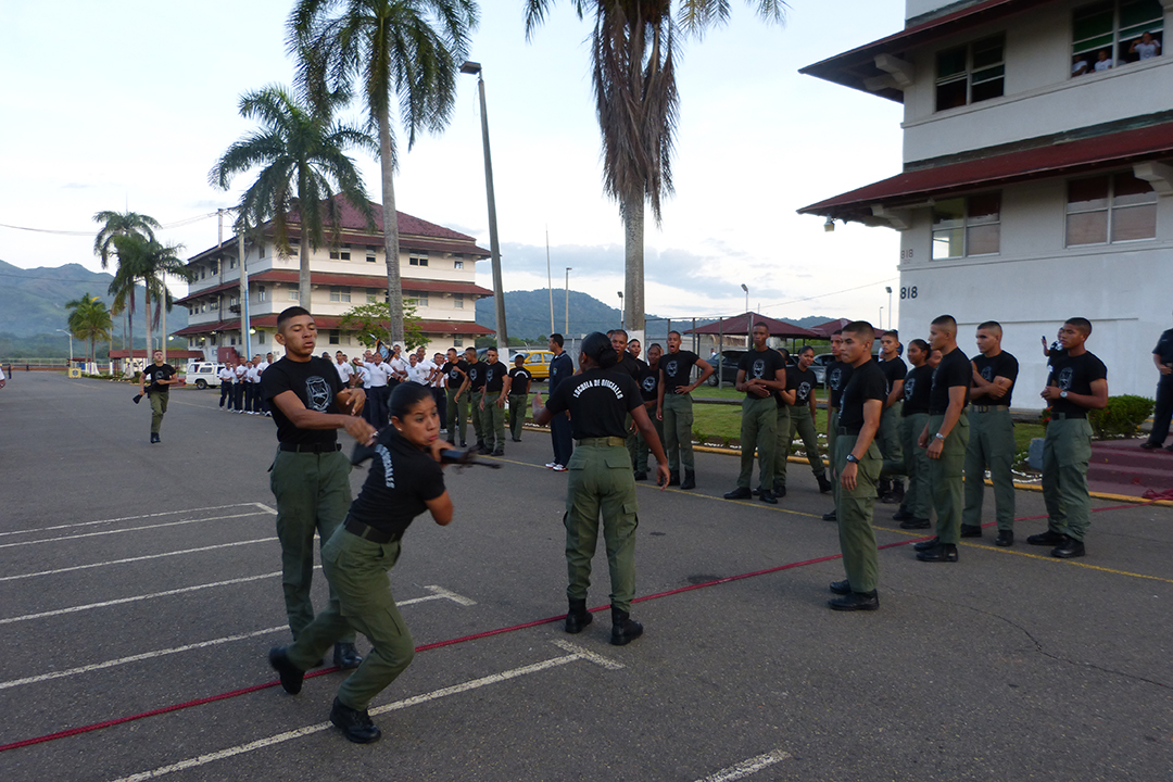Con el toque de las dianas por parte de la banda de música de la Policía Nacional, el despliegue de fuegos artificiales, el Centro de Enseñanza Superior, Dr. Justo Arosemena, a cargo del Subcomisionado Alexis Bethancourt Yau, inició la celebración de sus 15 años, entregando Oficiales al servicio de la Patria y la comunidad. Las actividades continuaron con una competencia de relevo, por parte de los cadetes, siendo el equipo ganador los cadetes de II año .... el segundo lugar lo ocupó el equipo de III año y el tercero puesto los de IV año. El Subcomisionado Alexis Bethancourt Yau, conversó con el equipo ganador instándolo a seguir compitiendo con hidalguía, responsabilidad y buen compañerismo, concluida la competencia se compartió un desayuno con todo el personal que labora en este centro de estudio superior contribuyendo con su granito de arena en la formación de los futuros Oficiales de la Policía Nacional. El Centro de Enseñanza Superior tiene como lema "Bastión de Valores" y ha entregado al país un total de 506 Oficiales con el rango de Subteniente y con el título de Licenciados en Administración Policial, otorgado por la Universidad de Panamá, entre ellos 58 mujeres y 433 masculinos y 15 extranjeros de países como El Salvador; República Dominicana, Nicaragua; Venezuela, Honduras. Otros de los logros alcanzados en 15 años es el cambio de la malla curricular, adecuándolo a nuestros tiempos, lo que contribuye a elevar el perfil de los egresados del Centro, además la práctica profesional de los Cadetes es netamente policial llevándolos al campo para que adquieran experiencias del lugar que será después su área de trabajo. Los Cadetes del CES son instruidos sobre la base de criterios que disponen la visión, misión, y los principios que orientan la función de la Policía Nacional hacia la salvaguarda de la seguridad ciudadana y en dirección a su consolidación como institución de primer orden en materia de derechos humanos así como el respeto y defensa del orden constitucional y legal vigente. El CES ha contribuido con los otros estamentos de seguridad del país graduando a 9 de sus unidades entre ellas 5 del Servicio de Protección Institucional (SPI), 4 del Servicio Nacional Aeronaval (SENAN), y 15 Subtenientes graduados del CES, han pasado a las filas del Servicio Nacional de Fronteras (SENAFRONT) con el objetivo de reforzar la labor en las áreas fronterizas. Actualmente la escuela de Oficiales se prepara para mudar sus instalaciones a la provincia de Colón, en las antiguas bases del Fuerte Davis, lo que contribuirá al fortalecimiento y desarrollo de la juventud colonense, con el reforzamiento de los valores éticos y morales, apoyando a la niñez, y el desarrollo de labores sociales en la costa atlántica por parte de los Cadetes. |