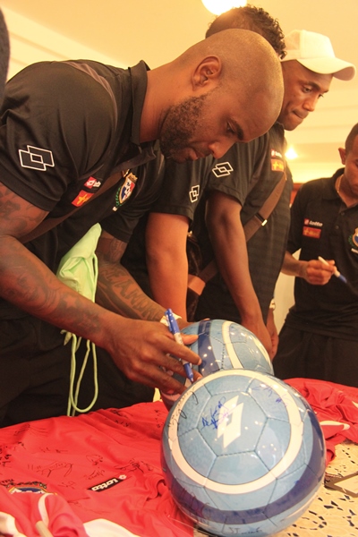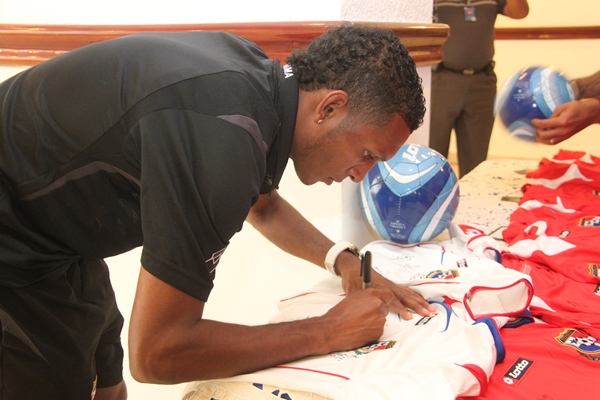 LA POLICÍA NACIONAL Y LA SELECCIÓN DE PANAMÁ INTERCAMBIAN IMPLEMENTOS DEPORTIVOS