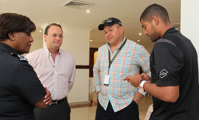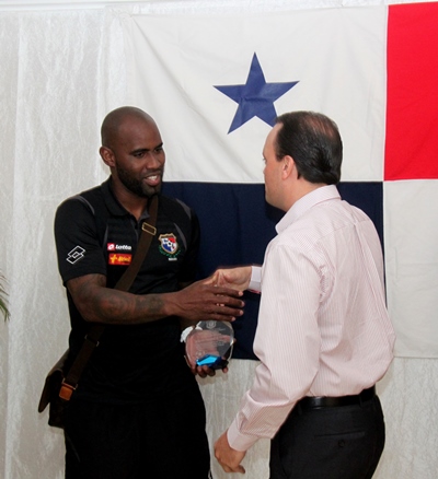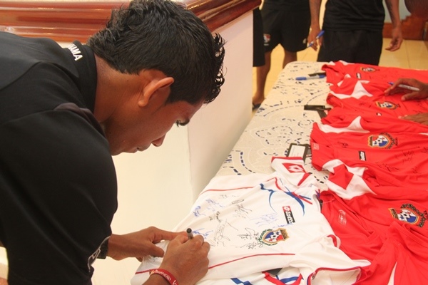 La Policía Nacional de Panamá visitó el Hotel donde se mantienen hospedados los jugadores y técnicos de la Selección de Futbol de Panamá, a quienes desearon suerte en su juego contra Mexico e hicieron entrega de un reconocimiento a los deportistas. Lograr un espacio dentro de la apretada agenda de estos valiosos jugadores no fue fácil. El director general de la Policía Nacional Julio Armando Moltó y demás oficiales que le acompañaban hicieron entrega de un reconocimiento a la Selección Panameña por el valioso apoyo incondicional a la noble y prestigiosa institución policial. Por parte de la Policía Nacional también se entregó a la selección camisetas y balones. De esta misma forma, los jugadores optaron por intercambiar las camisetas de la selección y balones autografiados con la policía. La Policía Nacional dedicará las camisetas y los balones para fines sociales. Estuvieron presente además del director Moltó, el subcomisionado Jorge Miranda jefe de la Dirección Nacional de Información Policial; subcomisionada Elida Ortega, subcomisionada Mirtha Mosquera jefe de la Policía de Niñez y Adolescencia, entre otros. |