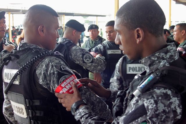 El juego entre Panamá y México a realizarse hoy, contará con más de mil unidades de la Policía Nacional, que se encargarán de la seguridad interna y externa del Estadio Rommel Fernández. Desde tempranas horas se formaron los grupos de policías en el estadio y en los alrededores, donde cada una de las unidades brindará seguridad a los jugadores y fanáticos tanto de la selección de Panamá como de México, entre los objetivos está el evitar que se susciten hechos que puedan alterar el orden público interrumpiendo el partido o que resulte lesionada persona. Pese al arduo trabajo que realizará la Policía Nacional estos decidieron demostrar su apoyo a la selección panameña colocándose una cinta roja con el lema “Vamos Panamá” en su brazo derecho. La Policía Nacional recuerda a la fanaticada tomar las medias de seguridad correspondiente en las rutas hacía el estadio, no conducir en estado etílico, mantener la calma a la hora de entrada y salida, permitir la revisión en las entradas para evitar el ingreso de armas u objetos no autorizados dentro del juego. En este dispositivo de seguridad se cuenta con miembros de la Dirección Nacional de Información Policial (DNIP), Dirección Nacional de Investigación Policial (DNIJ), Grupo de Apoyo al Servicio (GAS), Dirección Nacional de Operaciones del Tránsito (DNOT), entre otras direcciones y departamentos policiales. |