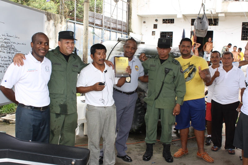 La Policía Cristiana de la 2da Zona Policial realizo la clausura del seminario " Manejo y estudio de la Biblia Thompson ", el cual fue dirigido a los privados de libertad que se encuentran en el cuartel de Penonomé. El seminario, tiene como propósito capacitar y entrenar a quienes predican la Palabra de Dios a través del uso y manejo de la Biblia de estudio Thompson y dar una orientación bíblica, al matrimonio en la tarea de enfrentar las dificultades del ministerio y de la familia. Al acto asistieron, el Teniente Mario Ovalle del Departamento de Seguridad Ciudadana y de la Policía Cristiana, el Sargento 2do Roberto Morales, el capellán Roberto Bushell de la 2da Zona Policial, capellanes invitados y los privados de libertad, quienes se encontraban emocionados y alegres, por el trabajo que la Policía Nacional les ofreció. Con palabras de agradecimiento, un privado de libertad manifestó la gratitud del apoyo y respaldo moral y espiritual a todas aquellas personas que aportaron su granito de arena para la coordinación de este proyecto. Por su parte, el capellán Roberto Bushell finalizó el seminario orando y llevando mensajes positivos y elevo plegarias de agradecimiento al señor, con la canción de glorias y alabanzas " Muévete en mí". |