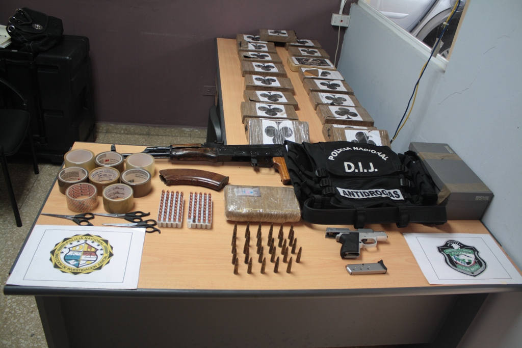 Droga, armas y hasta la detención de sujetos que pretendían protagonizar un tumbe de drogas fue el resultado de una operación de vigilancia y seguimiento realizada por Unidades Antinarcóticos de la Dirección de Investigación Judicial (DIJ) de la Policía Nacional. La operación denominada ‘Tormenta’ obtuvo su resultado durante un allanamiento a una residencia ubicada en el sector de Las Acacias, Juan Díaz. En el lugar se detuvo a seis sujetos entre ellos cuatro de nacionalidad panameña de 27, 29, 34 y 36 años sucesivamente, y dos de nacionalidad colombiana de 42 y 67 años de edad. Además se decomisaron veinte (20) paquetes de forma rectangular forrados con cinta adhesiva de color chocolate, los cuales un (1) paquete marco positivo a la prueba de campo siendo cocaína. Mientras que, dieciocho (18) paquetes que mantenían el logo de un trébol de color negro con fondo blanco resultaron ser madera y un (1) paquete con el logo de Lexus que contenía material de Gypsum. Adicional se decomisó un (1) fusil AK-47, una (1) pistola 9 milímetro, noventa y nueve (99) municiones de pistola calibre 9 milímetro, veintinueve (29) municiones de fusil AK-47, doce (12) municiones de revolver calibre .38. Durante esta operación se incautaron dos (2) vehículos los que se presume hayan sido utilizados por los detenidos. Los detenidos fueron puestos a órdenes de las autoridades judiciales para su investigación. De igual forma se remitió la evidencia a las instancias correspondientes. |