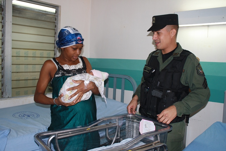 La noche del jueves 20 de junio, el sargento segundo Gil Balbuena, de servicio en la zona de Policía de Colón, salió a laborar como todos los días, cuando recibió una llamada, donde se le indicó que tenía que dirigirse a atender una situación en la calle 10 entre la avenida Central y Meléndez. Para sorpresa del sargento, en el lugar se encontraba una dama que presentaba dolores de parto. Se trataba de Labrina del Carmen Álvarez de 31 años, quien no tuvo chance de ser trasladada al hospital, por lo que el sargento con indicaciones vía telefónica del 911 y auxiliado por los vecinos atendió el parto, ayudando a traer al mundo a una hermosa niña. Emocionado por haber presenciado este milagro de vida, Balbuena explicó que nunca había tenido esta experiencia, pero gracias a las indicaciones de los paramédicos hizo a un lado el temor, y procedió hacer lo que mejor, hace servir a la comunidad, sin importar los obstáculos. Por su parte, esta joven madre agradeció al sargento por este gesto que le permitió a su hija nacer sin dificultad. Al día siguiente este comprometido y valiente uniformado, pendiente de la madre y su hija, las visitó en el hospital Manuel Amador Guerrero, siendo recibido con mucho cariño, pues ya las considera parte de su familia. |