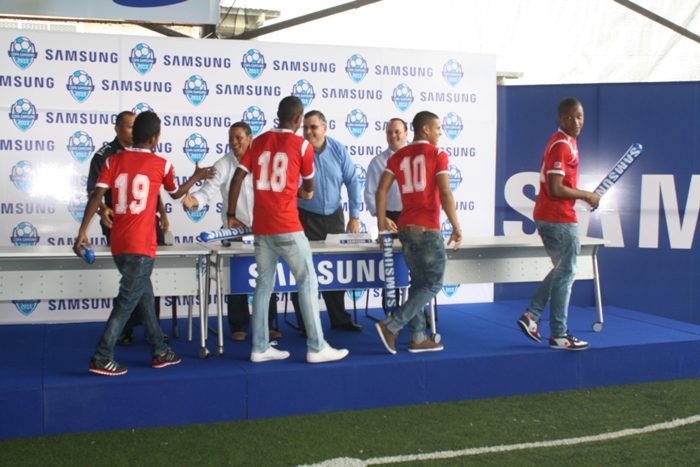 La Policía Nacional en conjunto con el Movimiento Nueva Generación y Samsung, unieron fuerzas para la realización del segundo torneo Copa Samsung 2013, y cuenta con la participación de 48 colegios Panamá, Colón y Chiriquí, que busca sensibilizar a la población infantil de Panamá e integrar a los padres de familia y directivos de los diferentes planteles educativos. Este proyecto deportivo cuenta con la participación de niños entre las edades de (8-12) años, la aspiración es organizar ligas recreativas en diferentes edades, en todos los barrios, principalmente en aquellos que se encuentren en riesgos de caer e hechos ilícitos como el consumo de droga y robos. Para el director general de la Policía Nacional, Julio Armando Moltó, esto no es más que un trabajo en equipo, mantener a la juventud en actividades sanas, recreativas y fuera del peligro, es nuestro norte, aseguró “Siempre contarán con el apoyo y respaldo de la Policía Nacional” . Por su parte, el jefe de la Unidad Preventiva Comunitaria (UPC), Subcomisionado, Raymundo Barroso, dijo que actividades como estas buscan estrechar lazos con la comunidad, Barroso, catalogó los torneos de carácter participativo, no competitivos, donde se fundamente en los derechos de los niños de hacer deportes y participar con sus pares de actividades recreativas. Finalmente, el profesor, Orlando Simpson, de la Escuela Nuevo Belén, agradeció el interés de las autoridades policiales y demás por el soporte al beneficio de la juventud. En encuentro se desarrolló en un restaurante de la localidad, donde se dejó oír que estos pequeños, quienes prometen dejar todo en la cancha recibirán premios, reconocimientos y efectivo, además de otras sorpresas por su participación en este segundo torneo Copa Samsung 2013. Junto al “Movimiento Nueva Generación” que lidera Héctor Brand. |