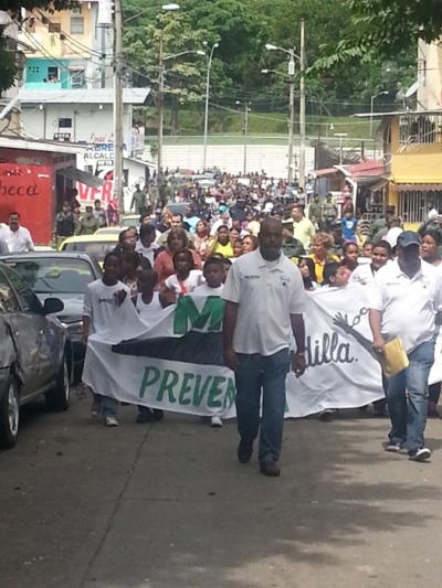 MORADORES DE CALIDONIA CAMINAN JUNTO A LA POLICÍA NACIONAL POR EL RESCATE DE LOS VALORES