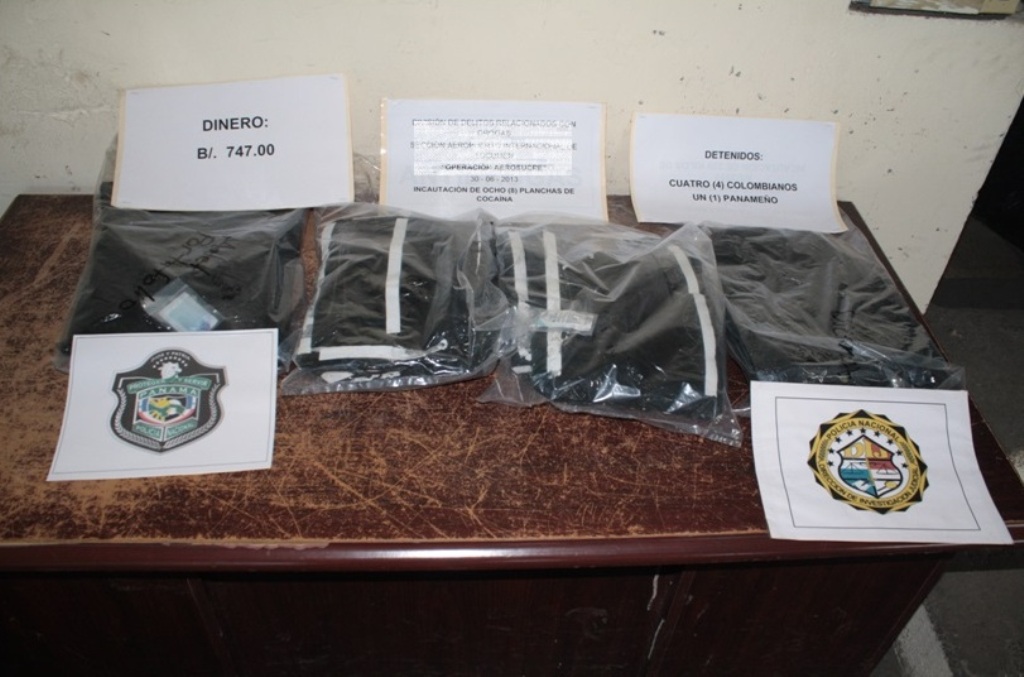 Cinco (5) detenidos, droga y dinero en efectivo fue el resultado de una operación realizada por las unidades de Narcótico de la Dirección de Investigación Judicial (DIJ) de la Policía Nacional. La operación se efectuó en horas de la mañana de ayer domingo 30 de junio, en el área de carga del Aeropuerto Internacional de Tocumen; donde, en conjunto con la Fiscalía Especial en Delitos Relacionados con Droga se realizó una diligencia de allanamiento a una nave de carga proveniente de Bogotá, Colombia, al recibir información que la misma transportaba sustancias ilícitas. Durante la diligencia, las unidades ubicaron: un maletín tipo portafolio, una maleta color negro y dos maletines de computadora portátil, con un peso no acorde con su supuesto contenido, los cuales fueron verificados por la Fiscalía. Al revisar el interior de los maletines, estos tenían un doble fondo. Cada una contenía dos (2) planchas envueltas con plástico negro y en su interior polvo blanco. También dentro del sobre se encontraron dos (2) planchas más con el mismo contenido. La prueba de campo por parte de la fiscalía concretó que la sustancia se trataba de la droga conocida como cocaína. Entre los detenidos se encuentran, cuatro (4) sujetos de nacionalidad colombiana y un (1) panameño, quienes fueron puestos a órdenes de las autoridades competentes para su debido proceso de investigación. También se incautó B/.747.00 en efectivo. |