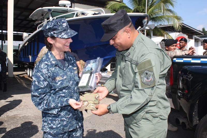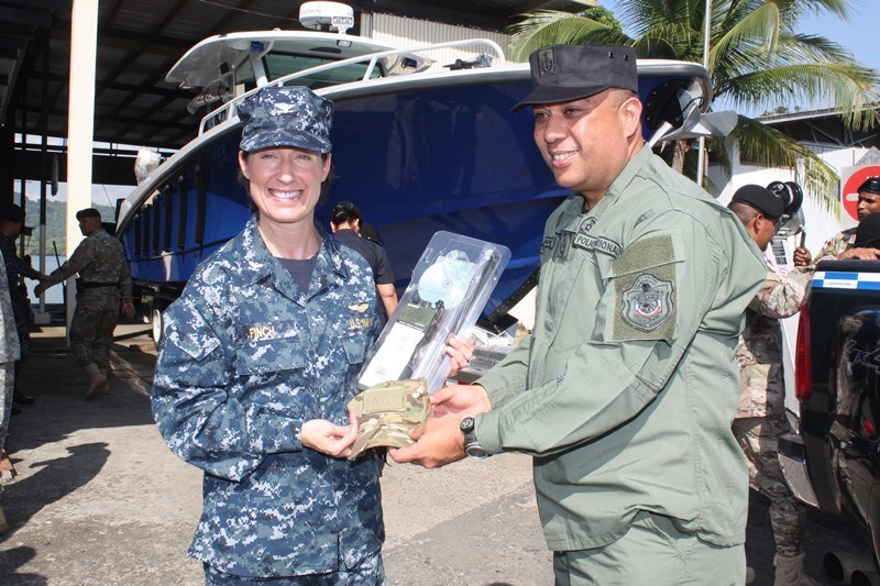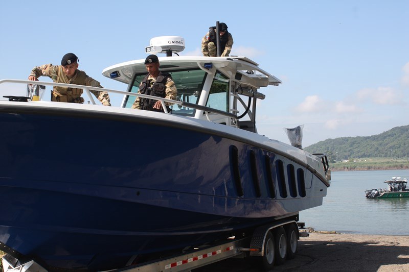 Con el propósito de respaldar la labor que realiza la Policía Nacional en la lucha contra el crimen organizado, la Embajada de Estados Unidos en Panamá hizo una donación de una lancha patrullera, además de equipos de radio comunicación; esto como parte de los programas de cooperación internacional entre ambas naciones. Esta lancha cuenta con tres motores de 250 caballos de fuerza y está dotada con la tecnología necesaria para reforzar el patrullaje en las costas. Durante el acto de entrega de este importante equipo, estuvo presente el Secretario General de la Policía Nacional, comisionado David Ramos Villa, el comisionado Erick Amaya, jefe de la Dirección Nacional de Transporte; el subcomisionado Luis Jiménez, jefe de Fuerzas Especiales, el subcomisionado Carlos Bethancourt, jefe la Policía Canalera y por parte de la Embajada de Estados Unidos la capitán de navío, Renée Finch.