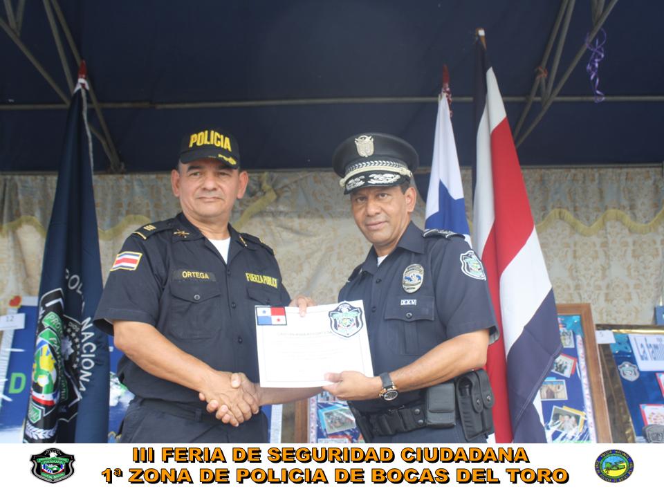 La Oficina de Seguridad Ciudadana de la 1º Zona Policial de Bocas del Toro, dirigida por el Comisionado Javier Castillo, ha realizado la 3º Feria de Seguridad Ciudadana en los estacionamientos de la Estación Policial de Changuinola. En la actividad participaron miembros de la Policía Nacional de la República de Costa Rica, quienes pintaron caritas y repartieron figuras hechas con globos a los niños visitantes de la Feria. De igual forma también participaron diferentes instituciones gubernamentales como el SENADIS que entregaron cheques del programa Capital Semilla para discapacitados, el MITRADEL inscribió jóvenes en el programa mi primer empleo, el MINSA vacunó mascotas como también aplicaron vacunas a los ciudadanos contra la hepatitis, el tétano y otras enfermedades. Nutre Hogar, CACSA, MULTI BANK, el IMA con la venta de productos Compita y otras instituciones también participaron. El Departamento de Trabajo Social realizó un concurso de murales con el tema “La Familia es el Espejo de la Sociedad “. En el Evento el Comisionado Castillo entregó certificados de agradecimiento y obsequios a las unidades de la Policía de Costa Rica y a los representantes de las instituciones participantes. |