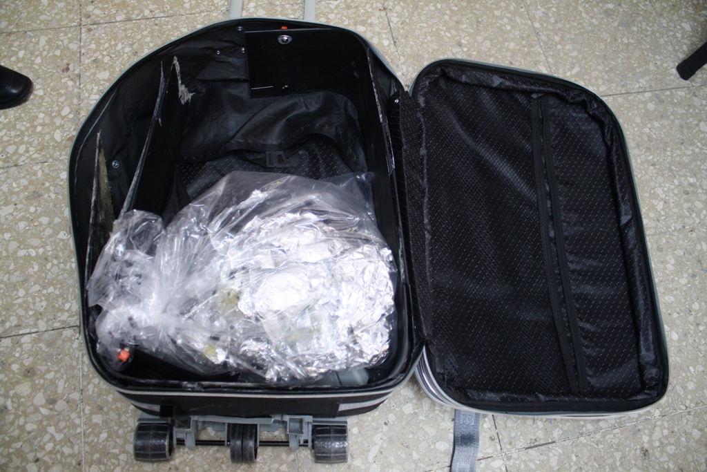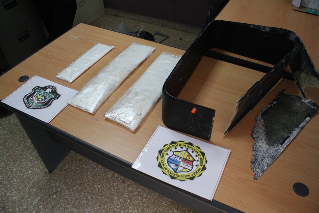 La suspicacia de las unidades de Narcótico marcó positivo una vez más en el Aeropuerto Internacional de Tocumen, donde retuvo a una mujer de 22 años de edad, de nacionalidad dominicana a quien le decomisaron una maleta con doble fondo. La joven que pretendía viajar pasando por Ámsterdam Holanda en tránsito con un destino final a Barcelona España fue aprehendida en el aeropuerto tras ser verificada por las unidades de la Dirección de Investigación Judicial (DIJ), quienes al estudiar su perfil se percataron de su conducta nerviosa. Al verificar la maleta en conjunto con la Fiscalía Especializada en Delitos Relacionados con Drogas se encontró en su interior ropa varia y dentro un marco plástico de color negro del cual se extrajo tres (3) planchas de forma rectangulares de diversos tamaños, forradas con papel aluminio y grasa. Dentro del plástico transparente se halló una sustancia en polvo color blanco con la droga conocida como cocaína. La mujer fue puesta a órdenes de las autoridades competentes para su investigación. Igualmente la evidencia. |