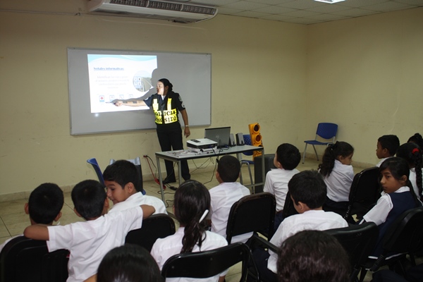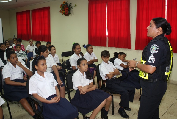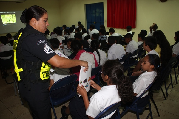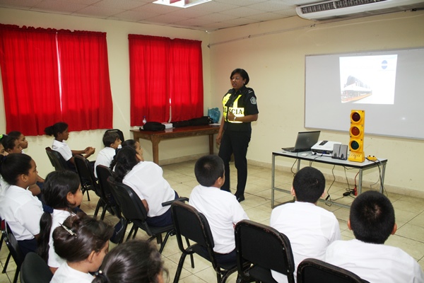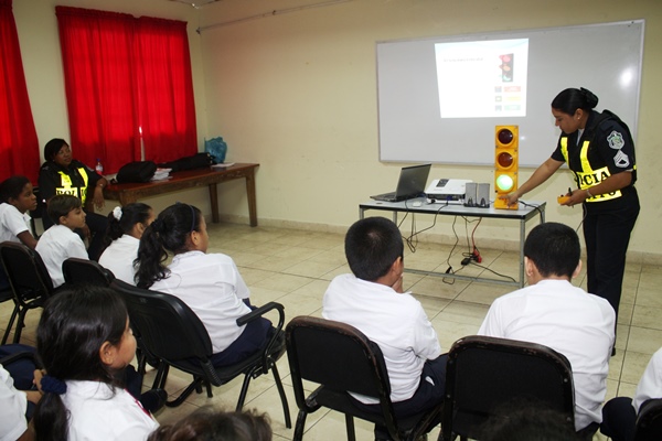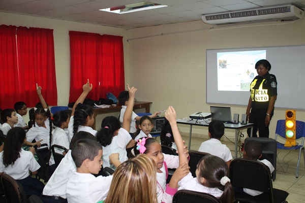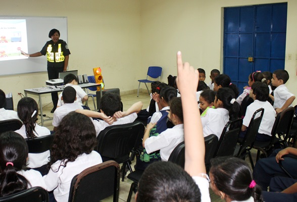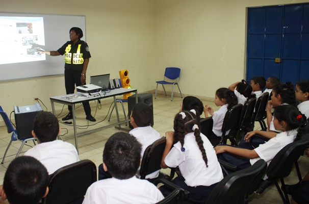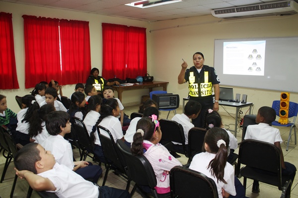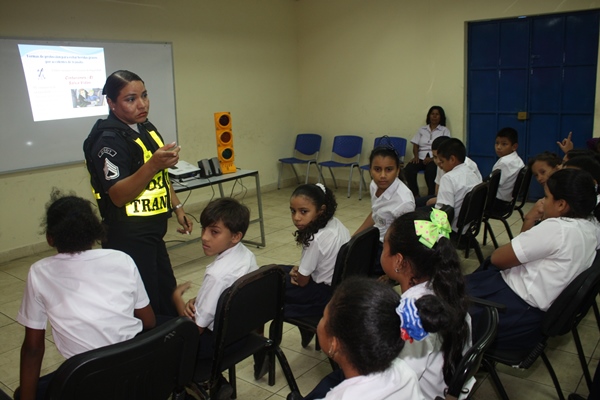 La Dirección Nacional de Operaciones del Tránsito, de la Policía Nacional dictó este martes y miércoles charlas sobre “Educación Vial Prevención y Seguridad”, dirigido a estudiantes de primaria, esta vez el programa se desarrolló en el colegio Ricardo Miró, ubicado en la Transístmica. La temática a desarrollar es “Normas de circulación”, brindar la oportunidad que los educadores de esta dirección instruyeran a los alumnos en este caso de primaria en todo lo relacionado a roles que se cumplen en la vía pública, como peatón o conductor. Las actividades consistieron en la proyección de un video animado, explicaciones e interactuación con los pequeños sobre su comportamiento, acercamiento visual a los elementos de seguridad. Todo esto enmarcado en la ley que regula el transito. Esta charla se ha centrado en el uso de los cascos, cinturones de seguridad, dispositivos de telefonía móviles, así como las distracciones durante la conducción. El comisionado, Aldo Macre, Director Nacional de Operaciones de Tránsito, dijo que estas charlas son muy productivas y recibidas con entusiasmo por los estudiantes y educadores. Las mismas son la continuación de lo que viene realizando la Dirección de Transito, en diferentes colegios del país.