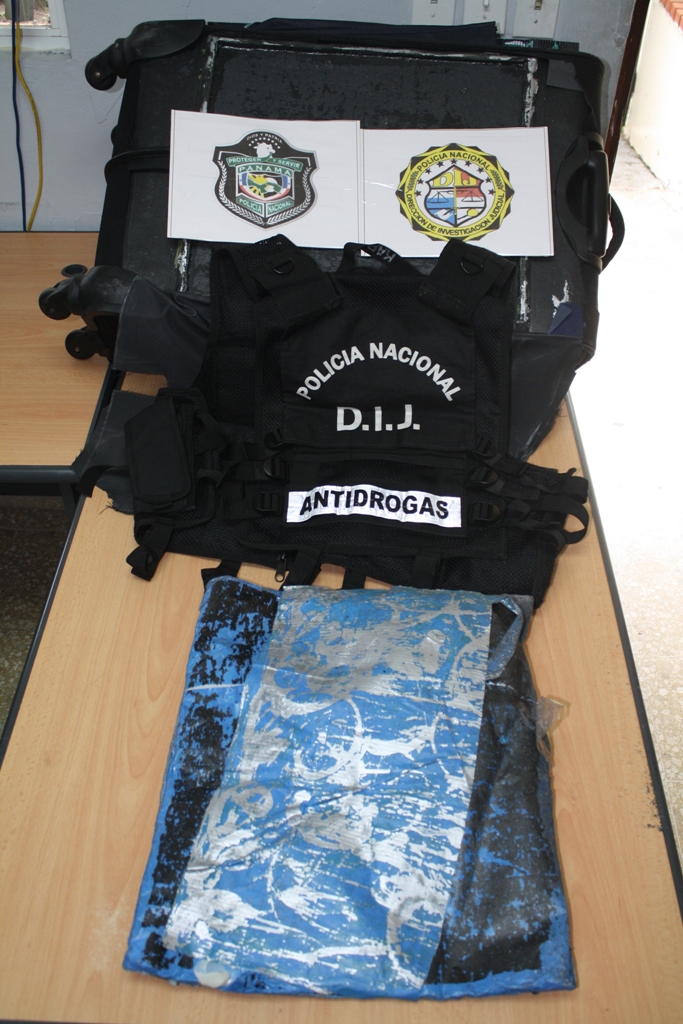 Unidades de Narcótico de la Dirección de Investigación Judicial (DIJ) de la Policía Nacional detuvo a un sujeto que pretendía salir del país con una maleta con droga. La operación denominada Ámsterdam se efectuó la tarde de ayer domingo 21 de julio en el Aeropuerto Internacional de Tocumen en conjunto con la Fiscalía de Drogas. Durante la verificación, se le incautó una maleta de color negro a un sujeto de 50 años de edad, donde mantenía ropa varia y además una plancha de la droga conocida como cocaína en la parte de atrás de la bolsa en doble fondo. El paquete de tamaño regular forrado con cinta adhesiva de color negra mantenía en su interior la sustancia de polvo blanco. El hombre de nacionalidad colombiana tenía como planes viajar a España con el doble fondo, sin embargo una rápida acción de las unidades de narcótico evitó su salida. La evidencia fue remitida a las autoridades competentes para su investigación, así como el detenido puesto a órdenes de las instancias judiciales. |