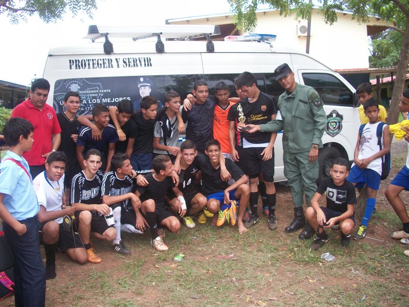 Unos 107 estudiantes de los colegios Padre Segundo Familiar Cano y José Octavio Huertas de Monagrillo y Pesé de la provincia de Herrera respectivamente participaron de un convivio organizado por unidades de la Policía Nacional a cargo del programa Jóvenes Contra el Delito (JOCODE)- Un partido de fútbol fue el juego en conjunto que compartieron estos dos planteles educativos la cual se logró gracias a la coordinación de la Zona de Policía de Herrera a través de la Policía de Niñez y Adolescencia. Son cuatro equipos los conformados, dos femeninos y dos masculinos, con el fin de unir los lasos de amistad y fortalecimiento de los Grupos de JOCODE, dentro de la provincia. |