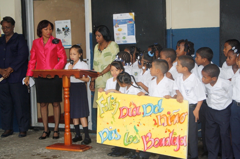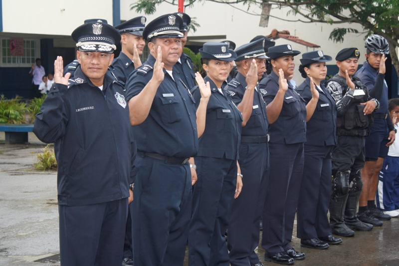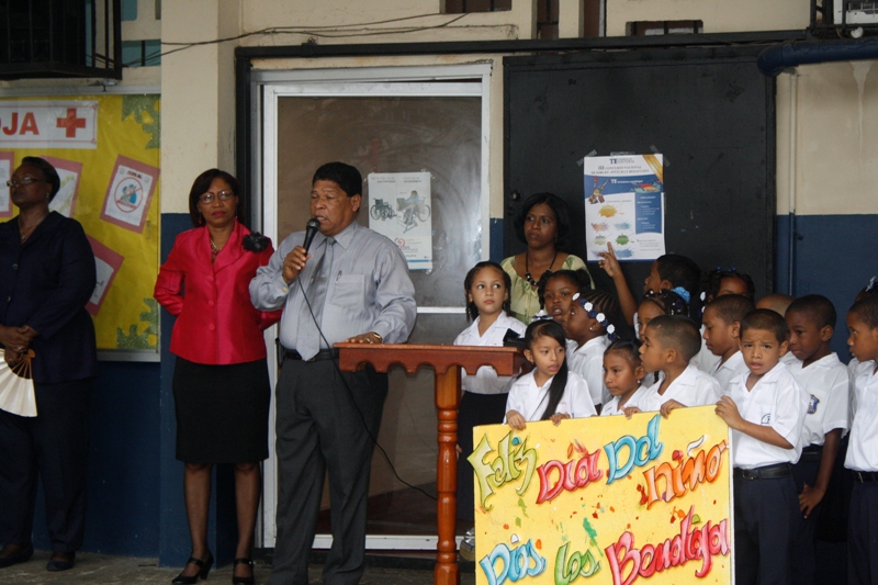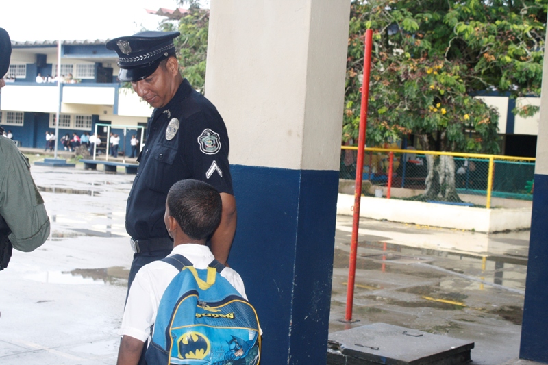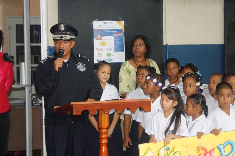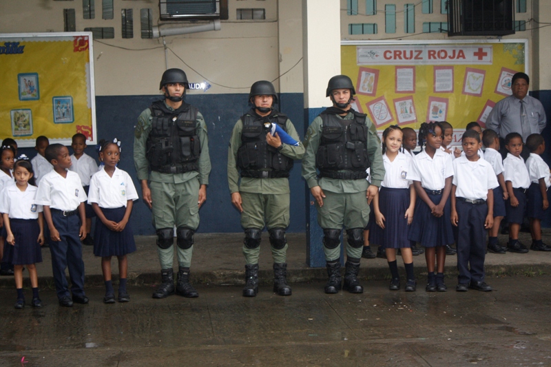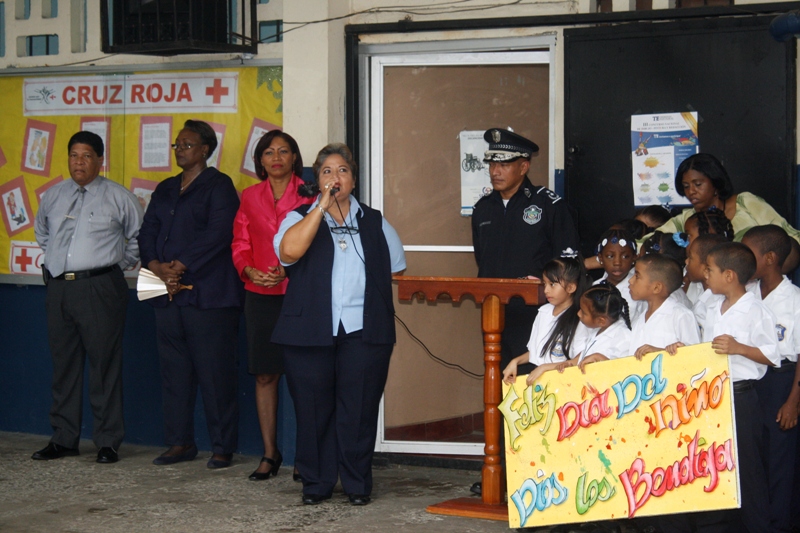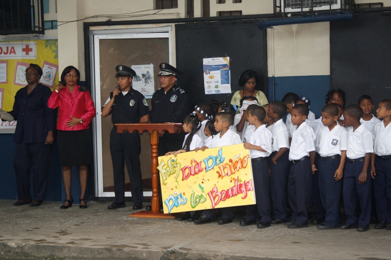 En la mañana de este lunes 22 de julio la Zona de Policía de Colón participó en la izada de la bandera y canto del himno en la escuela Porfirio Meléndez, ubicada en la calle 12 avenida Santa Isabel, acompañado de los cientos de estudiantes que estudian en ese plantel al igual que a los educadores y administrativos. La profesora María del Carmen Bernal directora de la escuela agradeció a la Policía Nacional por su participación ya que ellos en el marco de la celebración del Día del Niño y la Niña quisieron que la Policía Nacional compartiera con sus estudiantes este importante acto cívico. Mientras que el subdirector José Hernández, dijo que, a sus estudiantes les enseñan que la Policía es su “amiga”. La niña Carol Smith, que cursa el segundo grado y quien es nieta de la subteniente Briseida Muñoz que labora en esta zona fue la maestra de ceremonia. Por su parte el Subcomisionado Javier Rodríguez, jefe de Operaciones en representación del Subcomisionado Porfirio Justavino, señaló que este tipo de participación es parte de una programación que tiene la policía para estrechar los lazos de amistad con la comunidad y que mejor que empezar con los niños. Rodríguez, aprovechó la oportunidad para que un integrante de cada grupo o sección que compone la zona policial, se presentara y dijera cual es el trabajo que realiza el grupo o sección que representaba en ese momento.