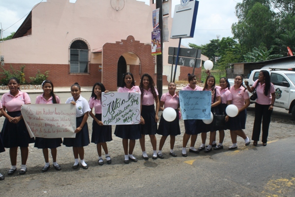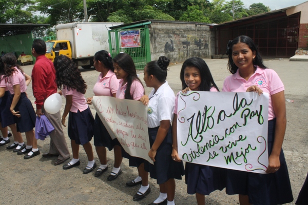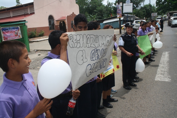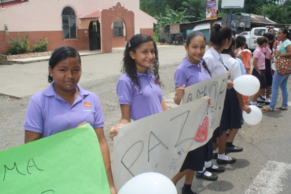 La actividad se desarrolló con el apoyo de las unidades policiales en este caso representantes de la Policía de la Niñez y Adolescencia del área, además de docentes, padres de familia y demás estudiantes del plantel, quienes salieron agarrados de las manos hasta las inmediaciones del colegio, gritando consigna y portando pancartas para pedir cese la violencia y reine la paz.