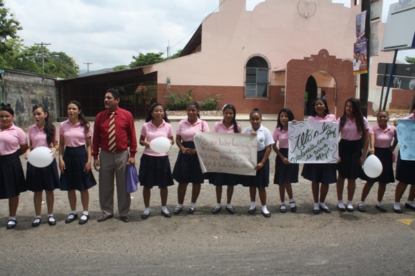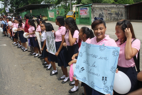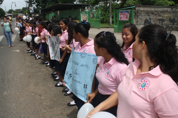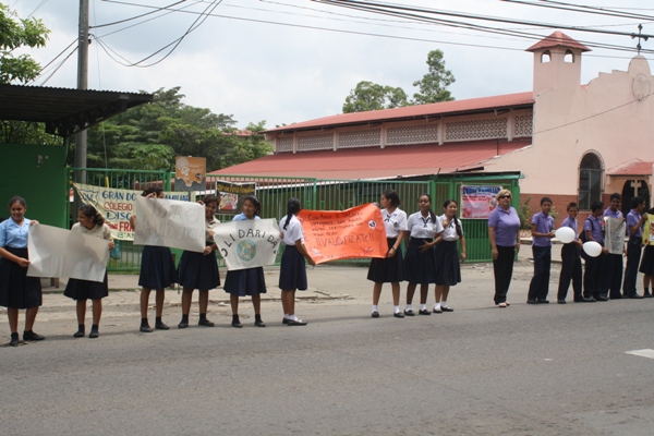 Los estudiantes del Instituto Profesional y Técnico Jeptha B. Duncan, ubicado en la 24 de Diciembre, realizaron una cadena humana para promover la paz, y la tolerancia entre la sociedad.