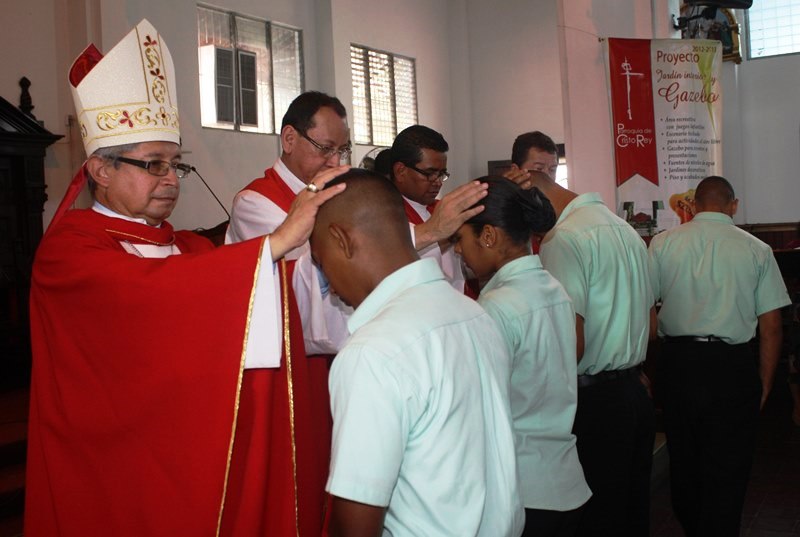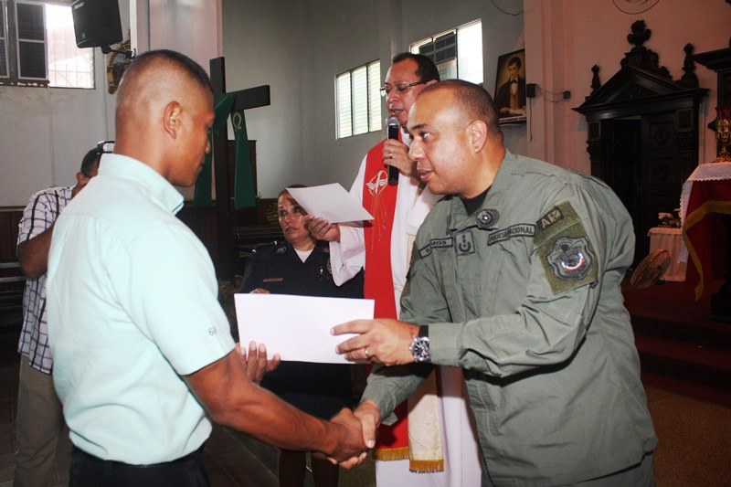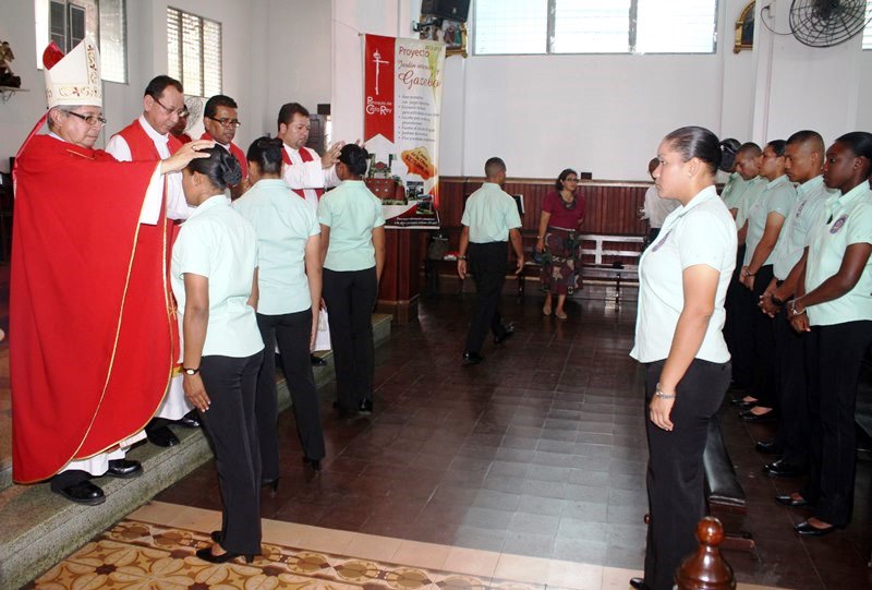 Unos 16 estudiantes de la Academia de Policía Presidente Belisario Porras aceptaron voluntariamente la fe de cristo mediante una ceremonia de confirmación realizada este viernes 26 de julio en la iglesia Cristo Rey. Con la imposición de manos y la unción con oleos sagrados estos futuros policías acrecentaron su fortaleza espiritual y se comprometieron en continuar sirviéndole a Dios, uniéndose más a él y a la iglesia católica. Durante la ceremonia religiosa que fue presidida por el Obispo Pedro Hernández y el Capellán de la Policía Edgar Flores, estuvieron presentes el comisionado David Ramos, Secretario General, la comisionada Diana Aponte y demás miembros de la institución de seguridad. Una vez culminada este acto se ofreció un almuerzo donde se brindó por este importante paso que dieron estos jóvenes agentes, ya que la confirmación es uno de los tres sacramentos de iniciación cristiana con el que se completa la obra del Bautismo y se fortalece con el don del Espíritu Santo.