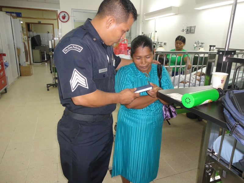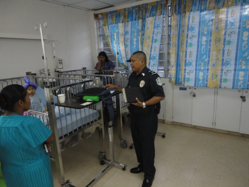 Dándole una palabra de aliento y compartiendo la palabra de Dios, a los que más lo necesitan, unidades de la Policía Cristiana de la Policía Nacional de la zona policial de Bocas del Toro visitaron la sala de niños en el Hospital Regional de Changuinola. Las unidades oraron y compartieron la palabra de Dios con los niños y familiares, y les afirmaron que Dios es la única respuesta a sus problemas. Durante las visitas de las unidades policiales se les entregó comida a los niños se repartieron tratados como también Biblias.