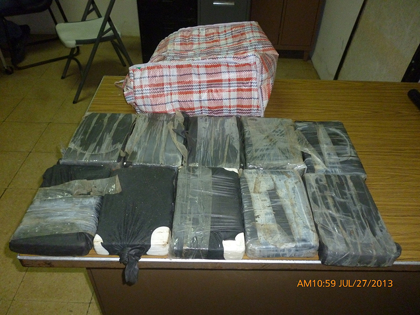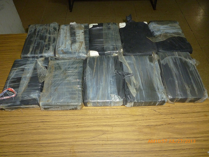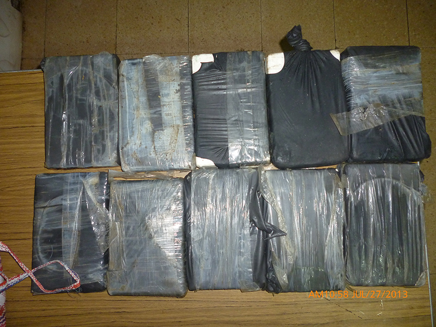Unidades de la Zona de Policía de Panamá Este en el área de Chepo, lograron la captura de un ciudadano de 20 años de edad, en posesión ilícita de varios paquetes con droga. El ciudadano quien vestía con pantalón a media piernas de color blanco, con suéter de color azul, zapatillas blanca y gorra negra fue capturado gracias a una llamada anónima de la comunidad que advertía de la presencia del sospechoso. Este sujeto se desplazaba por la vía principal hacia la comunidad Guna Wacuco, con una bolsa nilón de color blanco, roja y azul cuando fue divisado cerca de una vivienda. Al notar la presencia policial, este sujeto se dio a la fuga, por lo que fue perseguido y capturado. Dentro de la bolsa las autoridades encontraron un saco de regular tamaño que contenía varios paquetes en forma rectangular con un caucho de color negro que en su interior contienen presunta droga. Tanto el sospechoso como las autoridades fueron puestas a órdenes de las autoridades judiciales competentes de la Fiscalía Tercera Especializada en Asuntos de Droga, para profundizar las investigaciones y esclarecer las responsabilidades de rigor. |